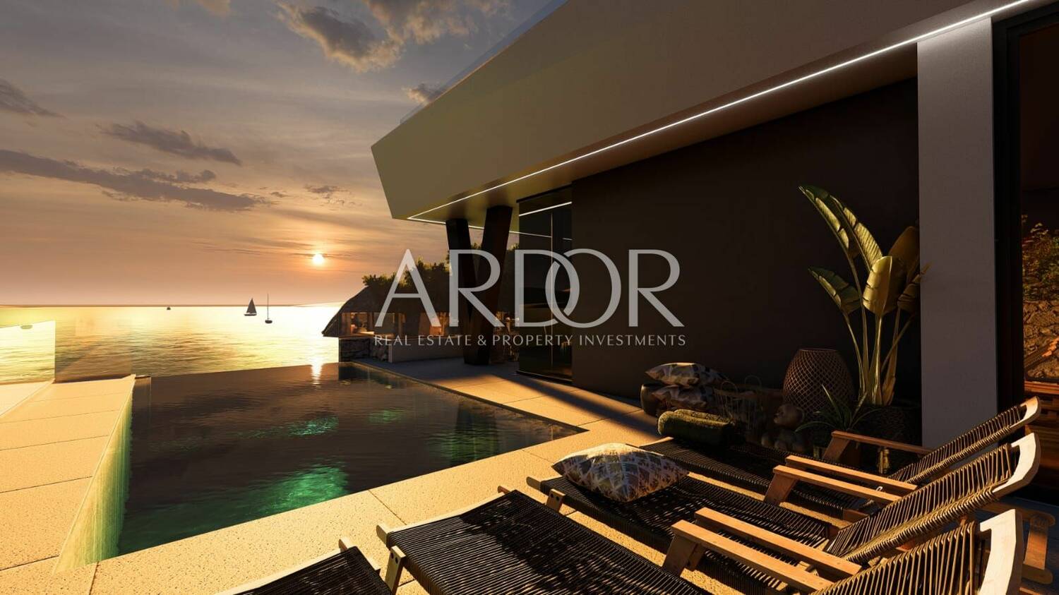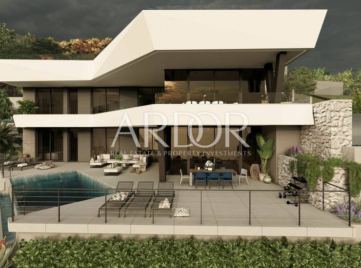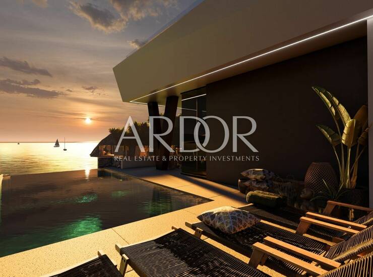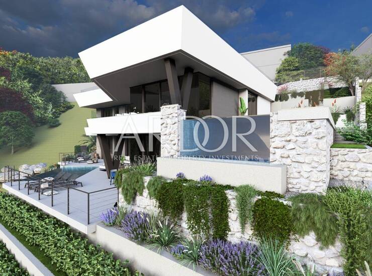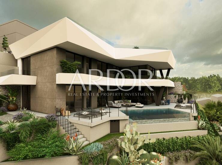 Projekt obuhvaća samostojeću kuću modernog dizajna, površine 400 m2, s otvorenim pogledom na more, infinity bazenom i krovnom terasom, površine 200 m2, a prodaje se kompletna firma s cjelokupnom dokumentacijom potrebnom za početak gradnje. Sve komunalije su već plaćene, tako da je projekt spreman za realizaciju bez dodatnih administrativnih troškova i čekanja.