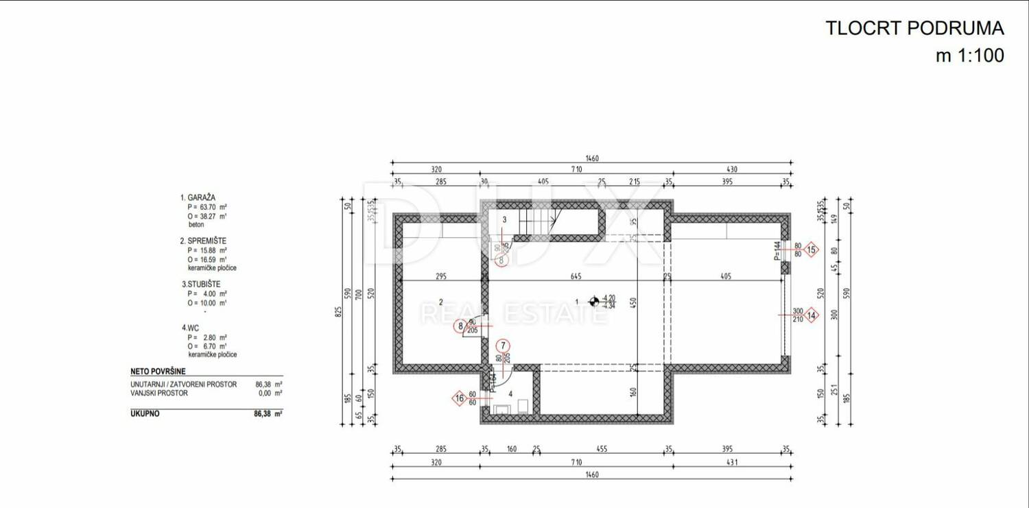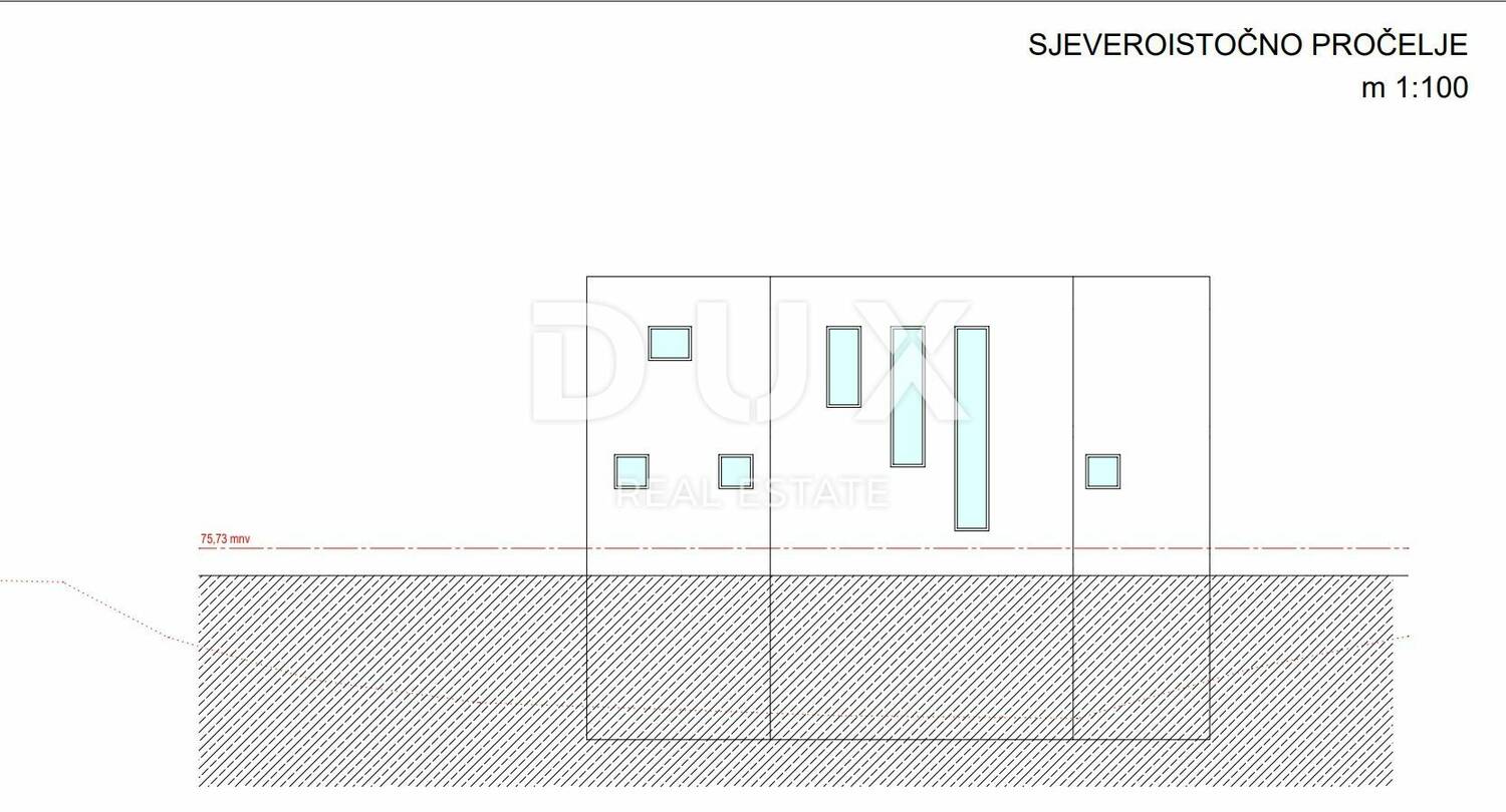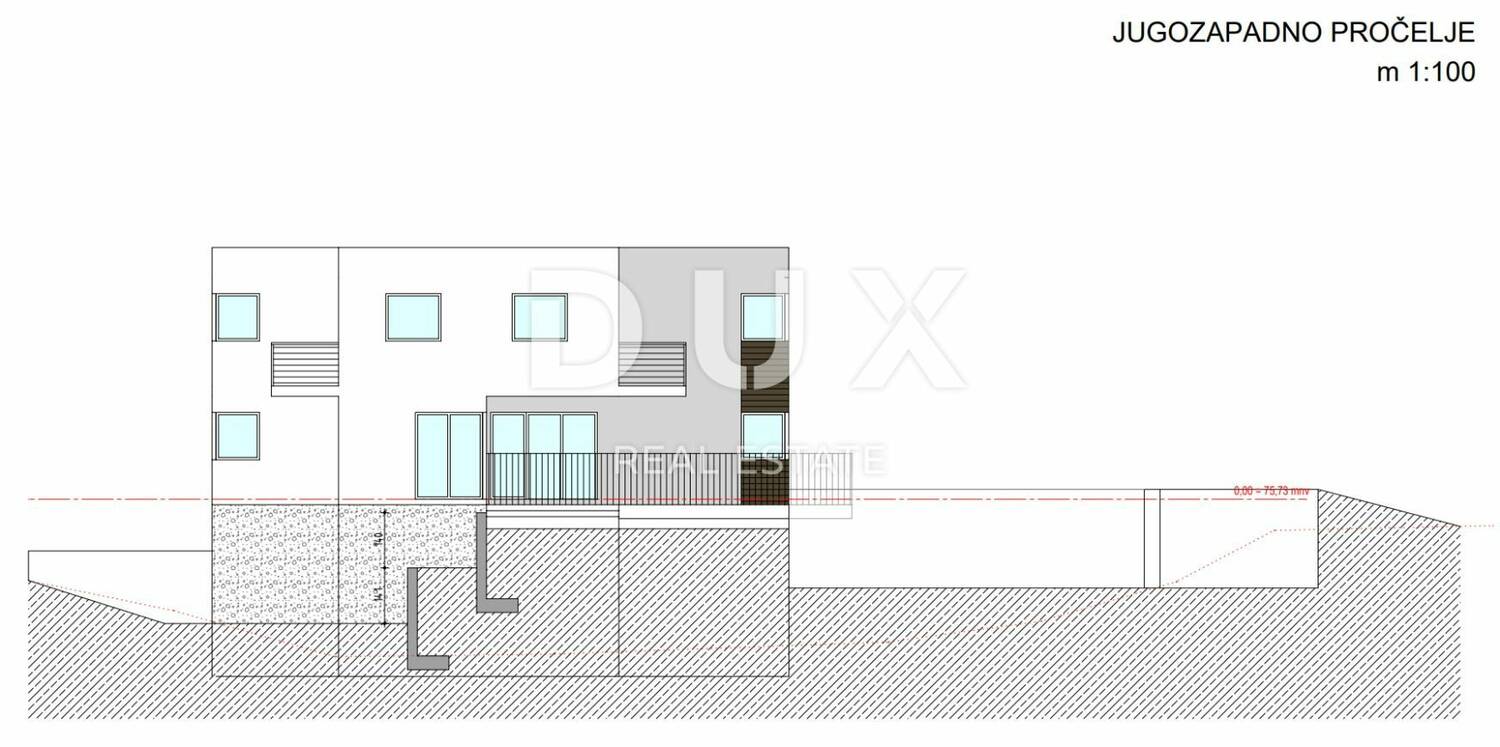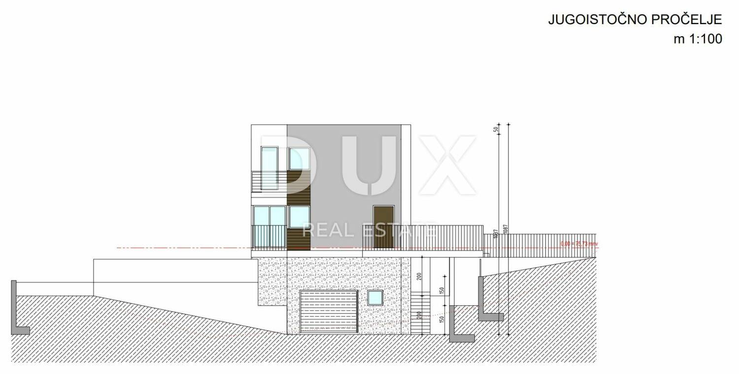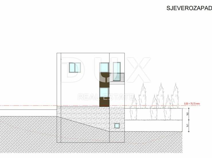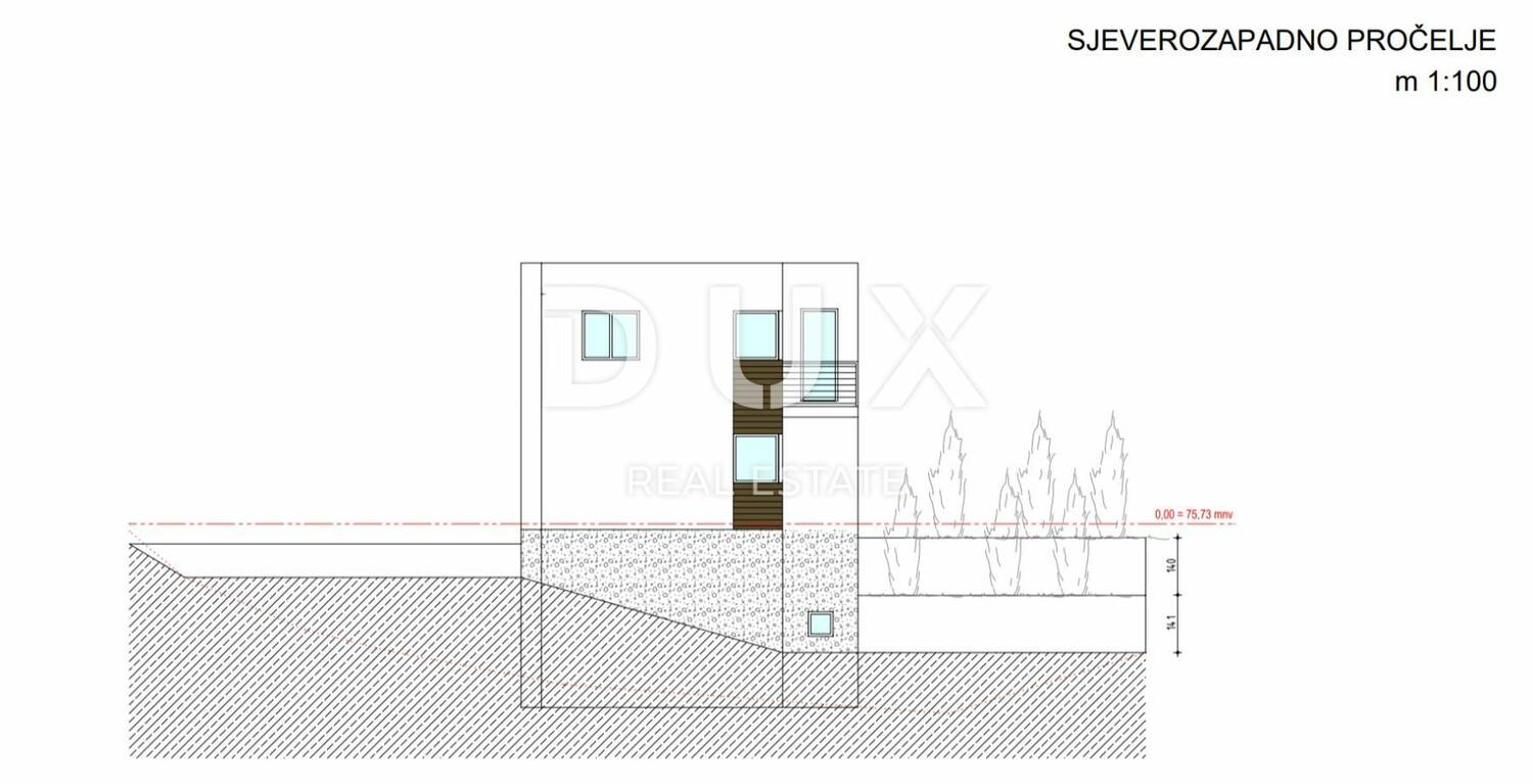 Građevinsko zemljište površine 900 m2 sa projektom za gradnju samostojeće obiteljske kuće sa tri etaže ukupne neto stambene površine od 253 m2 odnosno cca 90 m2 po etaži. Plaćen je komunalni doprinos i priključci struje i vode. Teren je očišćen i napravljena je temeljna ploča.