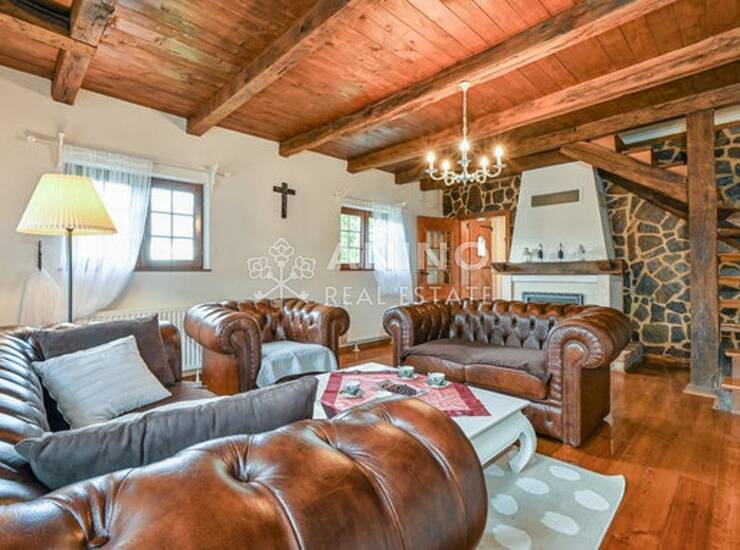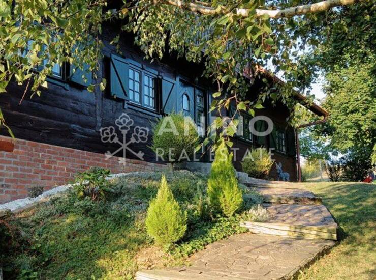 Izuzetna starinska drvena kuća stambene površine 140m2, teraasom, velikim dvorištem, garažom, izuzetnim panoramskim pogledom i zelenilom.