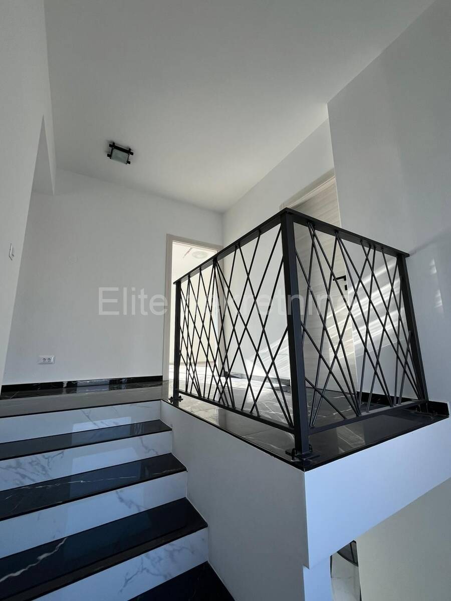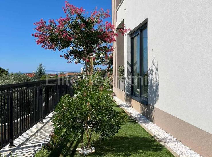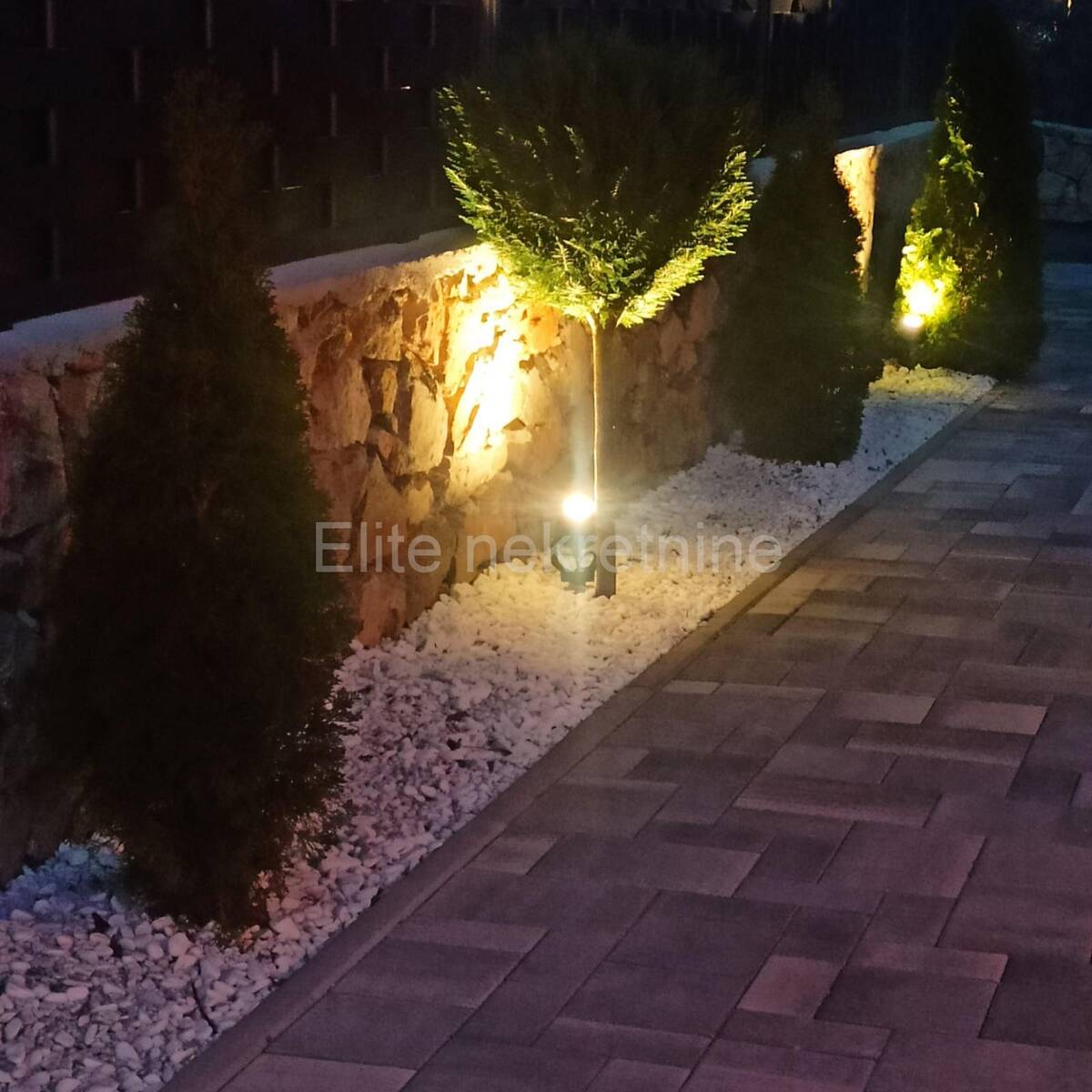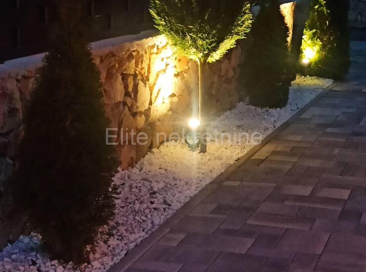 U Korniću prodajemo predivnu samostojeću luksuznu vilu sa pogledom na more.Kuća ima prizemlje i kat, ukupno 200 m stambene površine, a smještena je na parceli od 614 m2.U prizemlju je ulazni prostor, kuhinja, blagovaona, dnevni boravak, WC, kupaona i sauna.Na katu su tri spavaće sobe sa pogledom na more. Svaka kupaonica ima vlastitu kupaonicu, a na katu je i vešeraj.U okućnici je jacuzzi, roštilj, grijani bazen, parking i punionica za električna vozila.Vila ima video nadzor, alarmni sustav, kamin, el.rolete, Daikin klimatizaciju, dizalice topline, podno grijanje u kupaonicama, solarni bojler od 260 l i solarnu elektranu snage 10,5 kW.