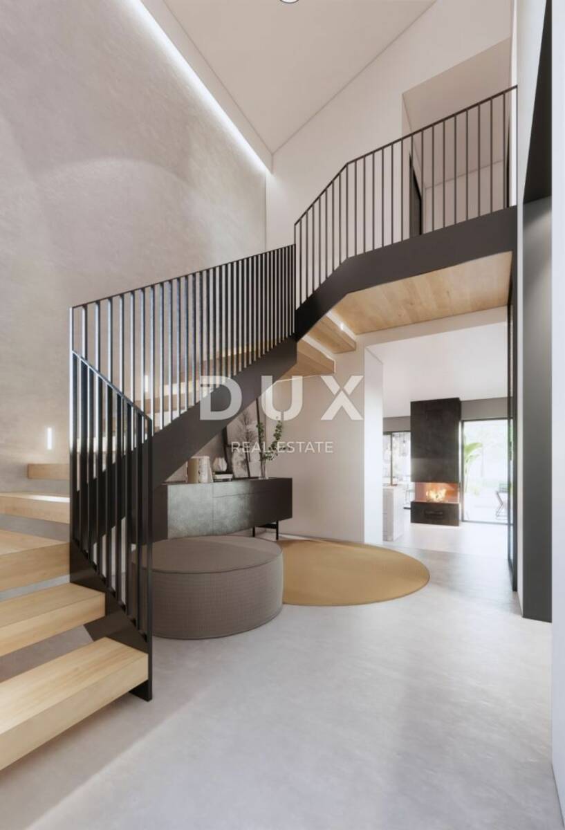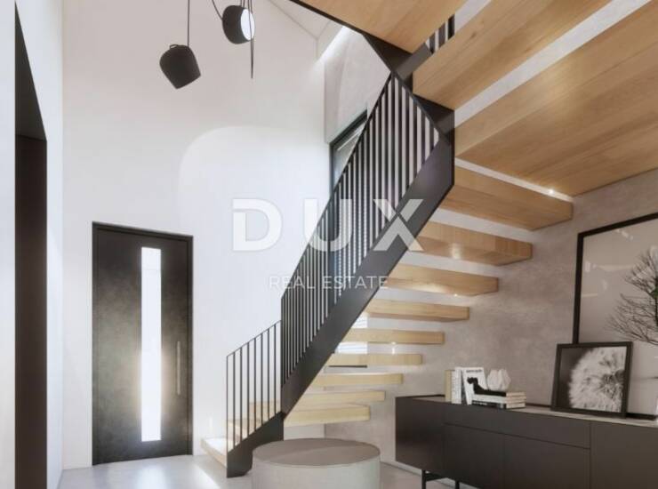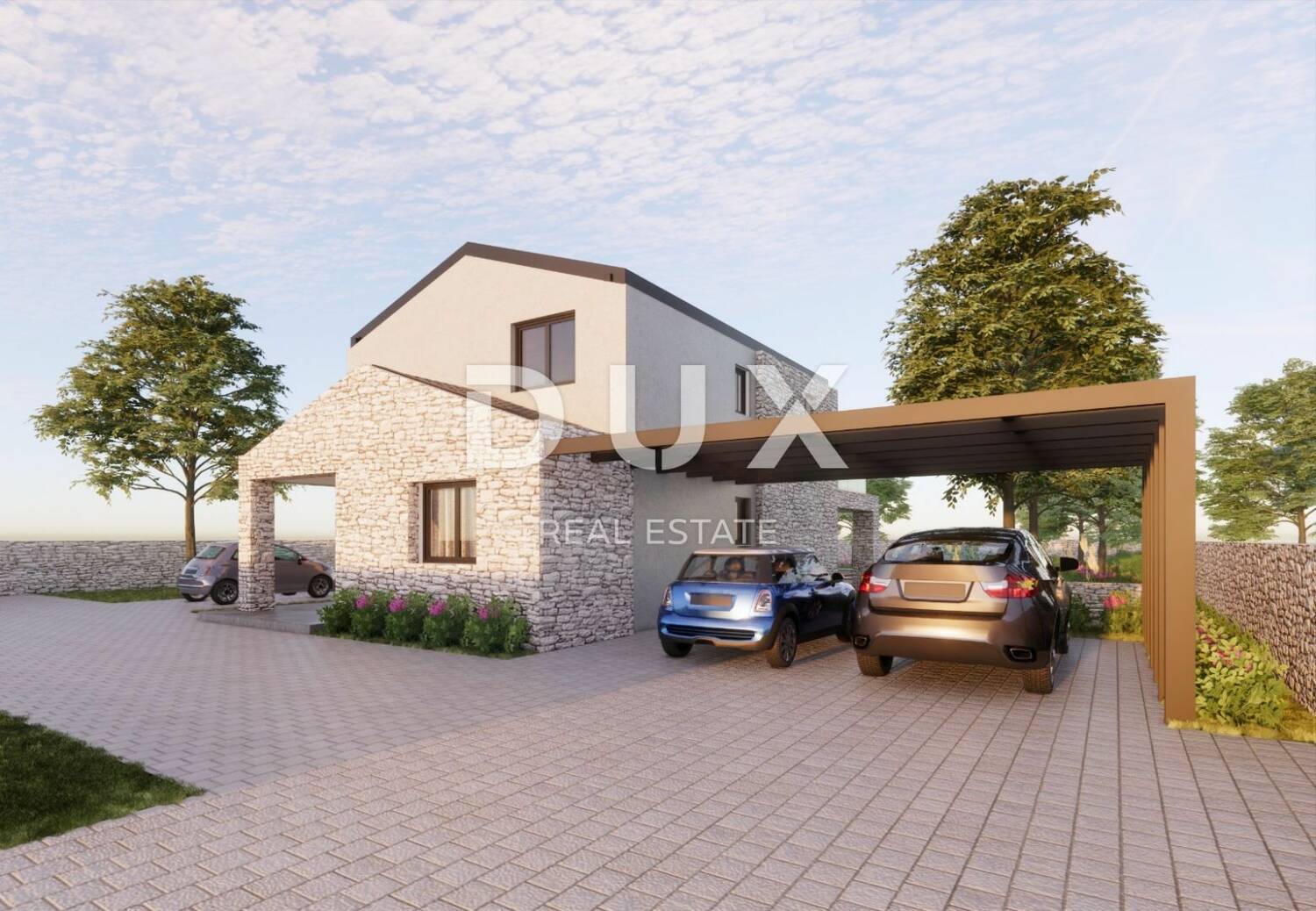 Na mirnom dijelu zapadne strane grada Krka, prodaje se moderna kamena vila sa prekrasnim panoramskim pogledom na more i otoke. Smještena na rubu zelene zone, na zemljištu površine 806 m2, luksuzna kuća vrhunskih materijala i modernog stila razvedena je na dvije etaže ukupne stambene površine 226,92 m2.