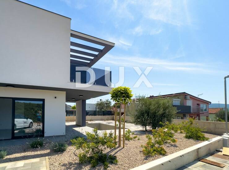 Ova prekrasna novoizgrađena vila s bazenom i pogledom na more smještena je na parceli 518 m2 i nalazi se na iznimno atraktivnoj lokaciji u neposrednoj blizini grada Krka.