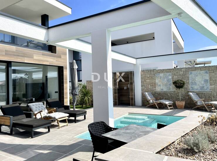 Predstavljamo vam iznimnu priliku – modernu i luksuznu vilu na jednoj od najpoželjnijih lokacija otoka Krka, koja nudi spektakularan pogled na more i savršenu kombinaciju privatnosti, elegancije i komfora.