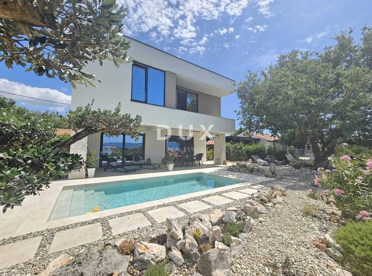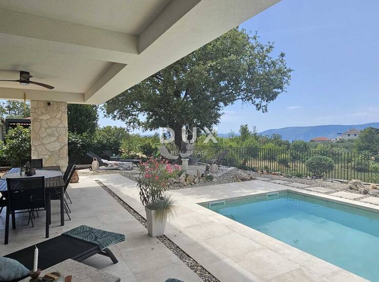 Luksuzna vila sa bazenom smještena u mirnom mjestu u okolici grada Krka sa predivnim pogledom na more.