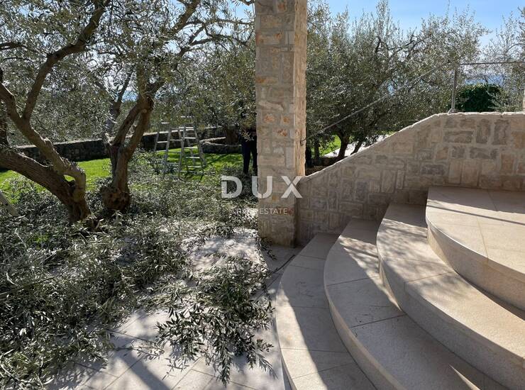 Uz iznimno lijepu okućnicu površine 700 m2 na kojoj se nalaze bazen, sunčalište, vrtna kučica, roštilj i mnogo maslina.
