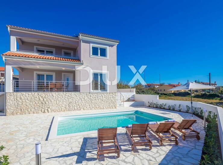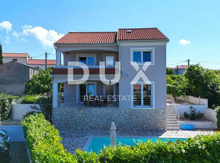 Predstavljamo samostojeću kuću s bazenom u mirnom naselju Linardići, 2 kilometra udaljenosti od mora.