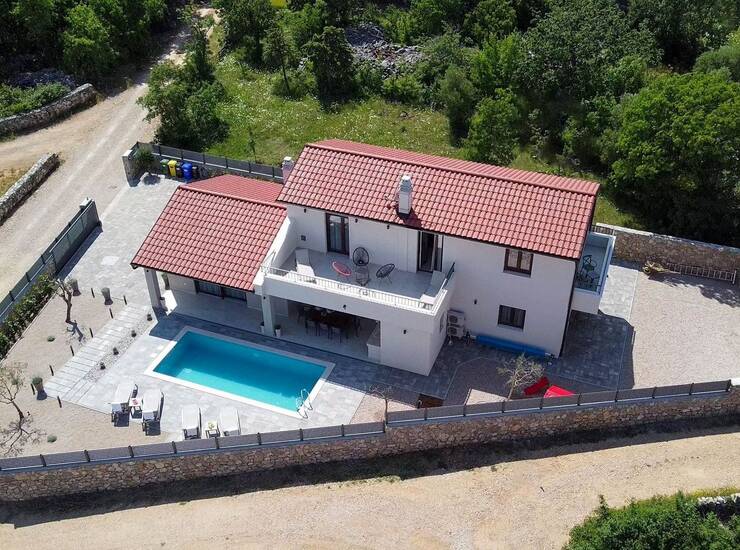 Vila je smještena u okolici Krka, na mirnoj lokaciji okružena obiteljskim kućama i prirodom na rubu zelene zone.