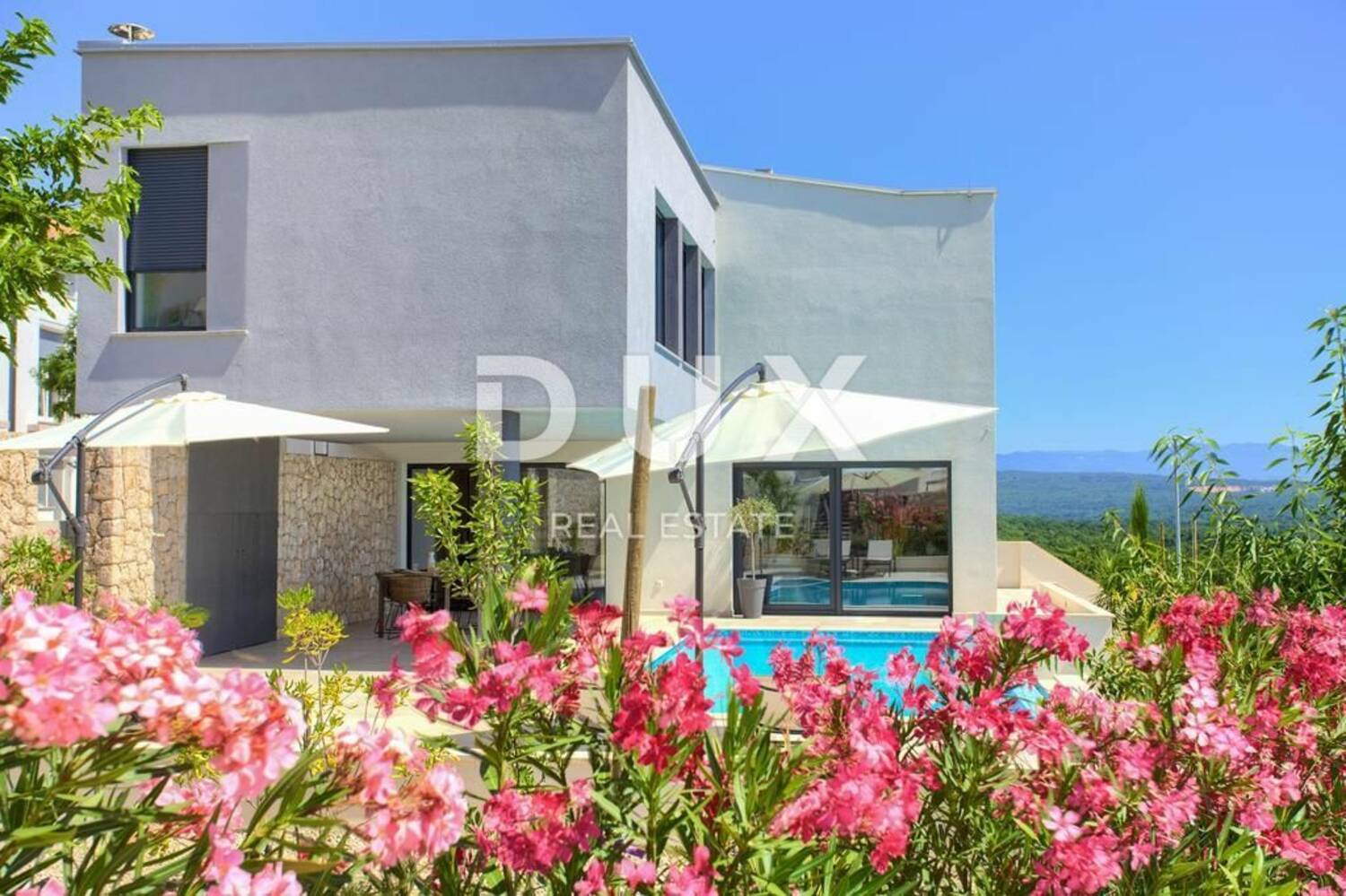 OTOK KRK, GRAD KRK (OKOLICA) - Luksuzna vila s preljevnim bazenom i pogledom na more