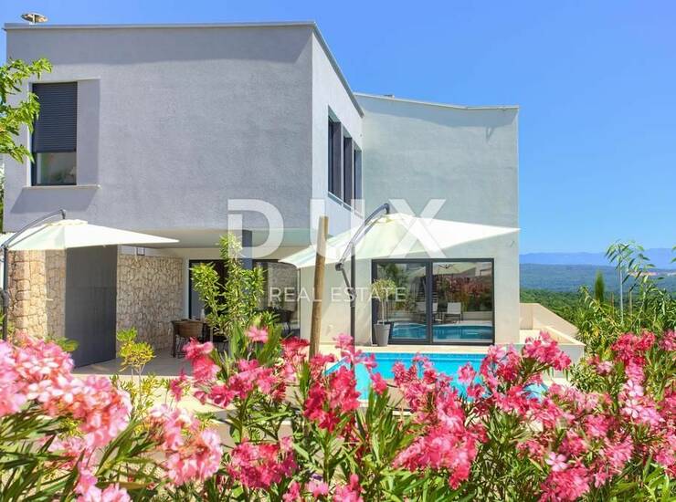 OTOK KRK, GRAD KRK (OKOLICA) - Luksuzna vila s preljevnim bazenom i pogledom na