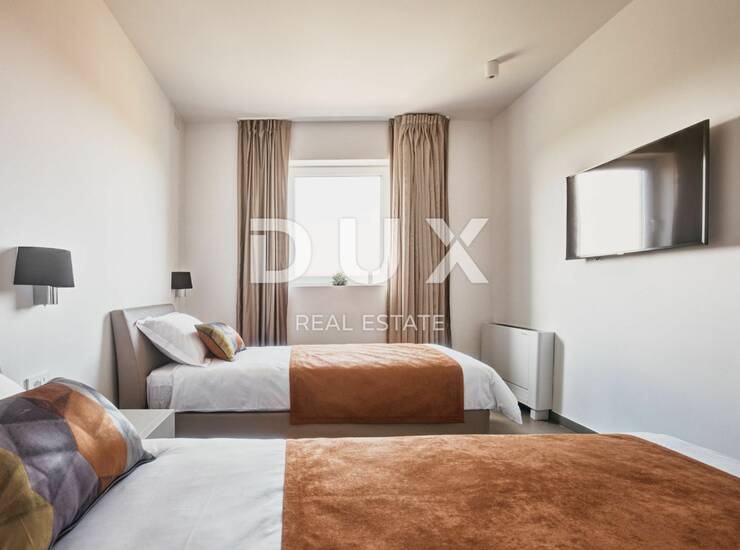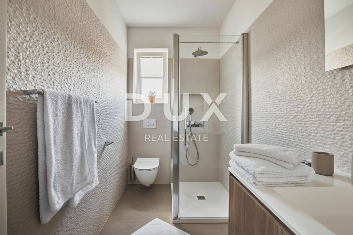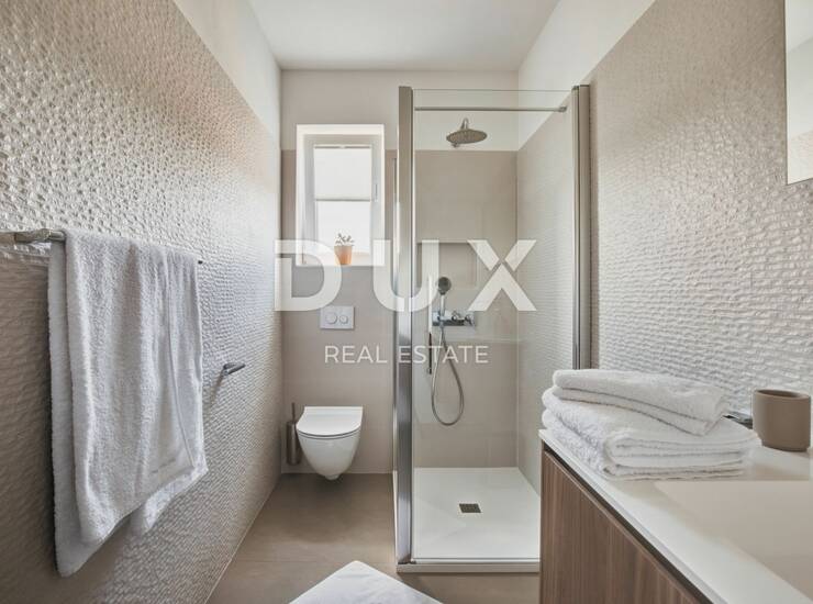 Ova predivna vila ima ukupno 293 m2 stambenog prostora, koji je s pažnjom uređen i odiše luksuzom. Proteže se na dvije etaže: prizemlje i kat. U prizemlju se nalazi dnevni boravak, blagovaonica i kuhinja u zajedničkom prostoru, hodnik, zimski vrt i toalet, uređeno s posebnom pažnjom i stilski savršeno usklađeno, te se stapa s vanjskih prostorom i čini nekretninu savršenom za odmor i opuštanje. Posebno treba napomenuti sobu za igru, fitness i finsku saunu za više osoba. Tu je smješteno i spremište za pohranu stvari i kotlovnica. Na prvi kat vode stepenice gdje se te četiri predivne spavaće sobe, svaka sa kupaonicom. Svaka soba ima vlastitu lođu koja osigurava dio privatnosti za pojedinca, tu se nalazi i vešeraj.