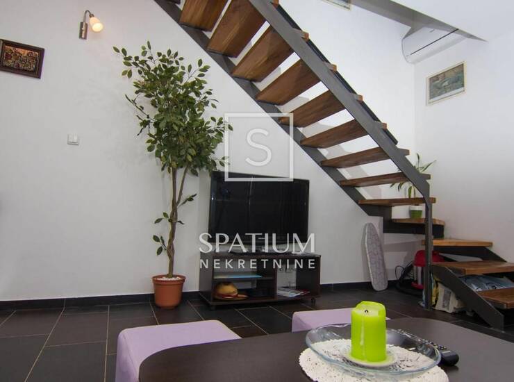 Sastoji se od dva dvoetažna stana, svaki ima kuhinju, blagovaonu, dnevni boravak, dvije spavaće sobe, dvije kupaone, terasu i balkon.