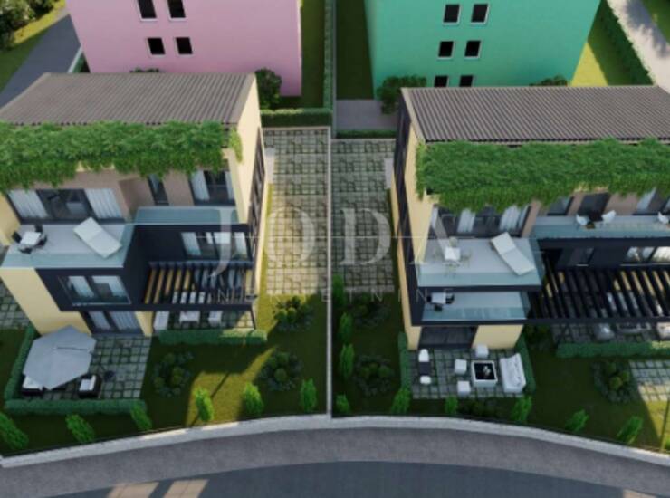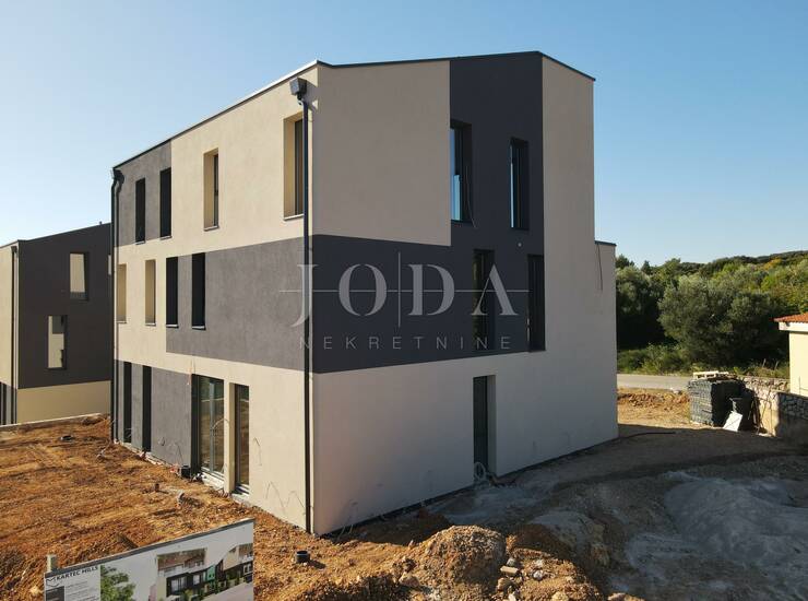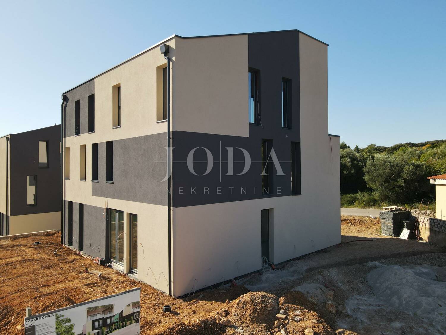 U prizemlju se nalazi dnevni boravak s izlazom na terasu i okućnicu, kuhinja i 2 spremišta i wc, a unutarnjim stepenicama se dolazi na prvi kat gdje se nalaze tri spavaće sobei dvije kupaonice. U izgradnji i opremanju stanova koriste se najkvalitetniji materijali i oprema. Završetak gradnje je planiran sljedeće godine. Apartmani se nalaze na odličnoj lokaciji, 500 metara od mora i centra grada.
