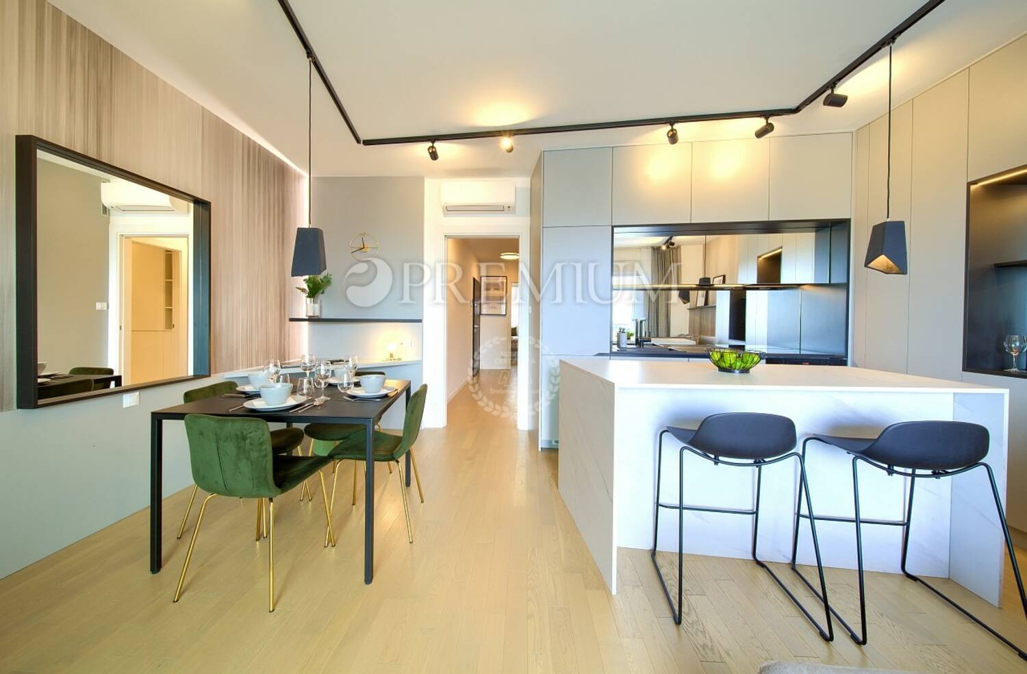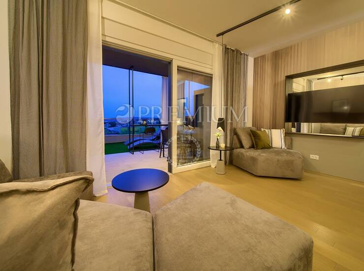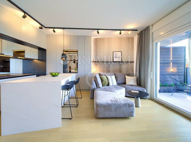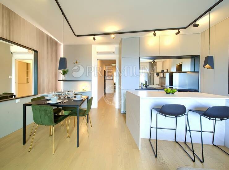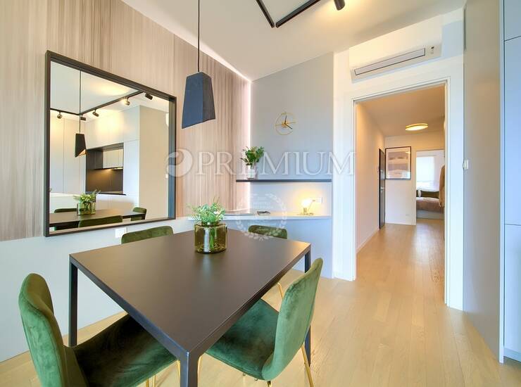 Prodaje se potpuno namješten, a sav namještaj uključen je u cijenu. Apartman karakterizira moderan dizajn, kvalitetna gradnja i funkcionalan raspored prostorija. Sve prostorije su klimatizirane, dok su kupaonice opremljene podnim grijanjem, što osigurava ugodan boravak tijekom cijele godine. Uz apartman dolaze i dva parkirna mjesta.