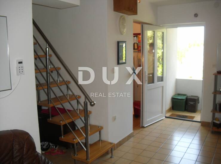 Dvoetažni apartman na prvom katu (69 m2) i visokom potkrovlju (57 m2) kuće sa dvije stambene jedinice nalazi se na odličnoj lokaciji blizu mora i nedaleko centra Grada Krka.