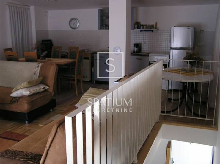 Tri spavaće sobe i kupaonica nalaze se na prvoj etaži dok su u visokom potkrovlju kuhinja s blagovaonicom, dnevni boravak i lođa.