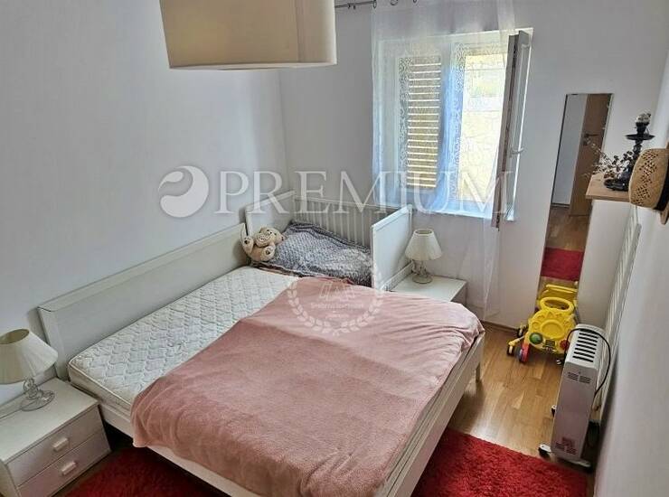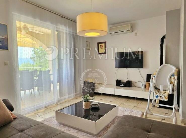 Prodaje se apartman površine 73 m² u prizemlju zgrade s ukupno četiri stambene jedinice, izgrađene 2009. godine. Sastoji se od ulaznog prostora, dvije spavaće sobe, kupaonice, spremišta, kuhinje s blagovaonicom te dnevnog boravka s izlazom na prostranu terasu od 40 m² s prekrasnim pogledom na more.