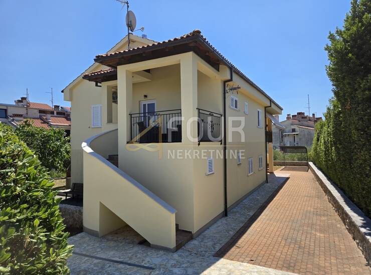 Na kat se dolazi vanjskim kamenim stepenicama gdje se nalazi prostrana terasa, savršena za opuštanje i druženje. Stambeni dio na katu osmišljen je kao funkcionalan open space s dnevnim boravkom, kuhinjom i blagovaonicom, uz dodatne sobe i prateće prostorije, dok potkrovlje pruža dodatni smještaj i prostor za pohranu.