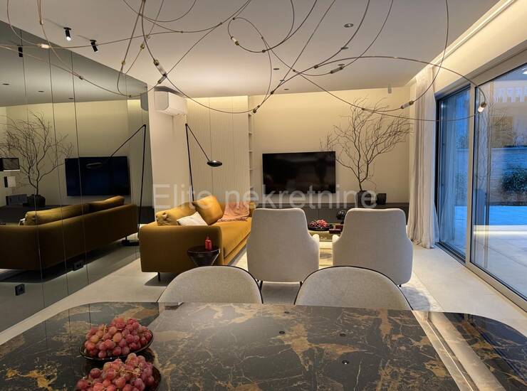 Prodaje se luksuzan stan u prizemlju ( 1.KAT ) moderne novogradnje vrhunske kvalitete, na iznimnoj lokaciji — svega **200 m od mora** i u blizini svih sadržaja.