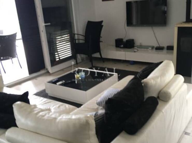 Na prodaju je lijepo uređen i namješten apartman površine 75 m² smješten u prizemlju manje stambene zgrade u mirnom okruženju. Apartmanu pripada i drvarnica od 10 m² te jedno parkirno mjesto.
