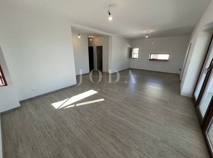 Stan se sastoji od predsoblja, kuhinje s blagovaonicom, dnevnog boravka s izlazom na terasu s pogledom na more, tri spavaće sobe te tri kupaonice s tuš kabinama. Posebnu vrijednost ovoj nekretnini daje prostrana krovna terasa koja se prostire iznad cijelog stana i pruža otvoren pogled te mogućnost ugodnog boravka na otvorenom.