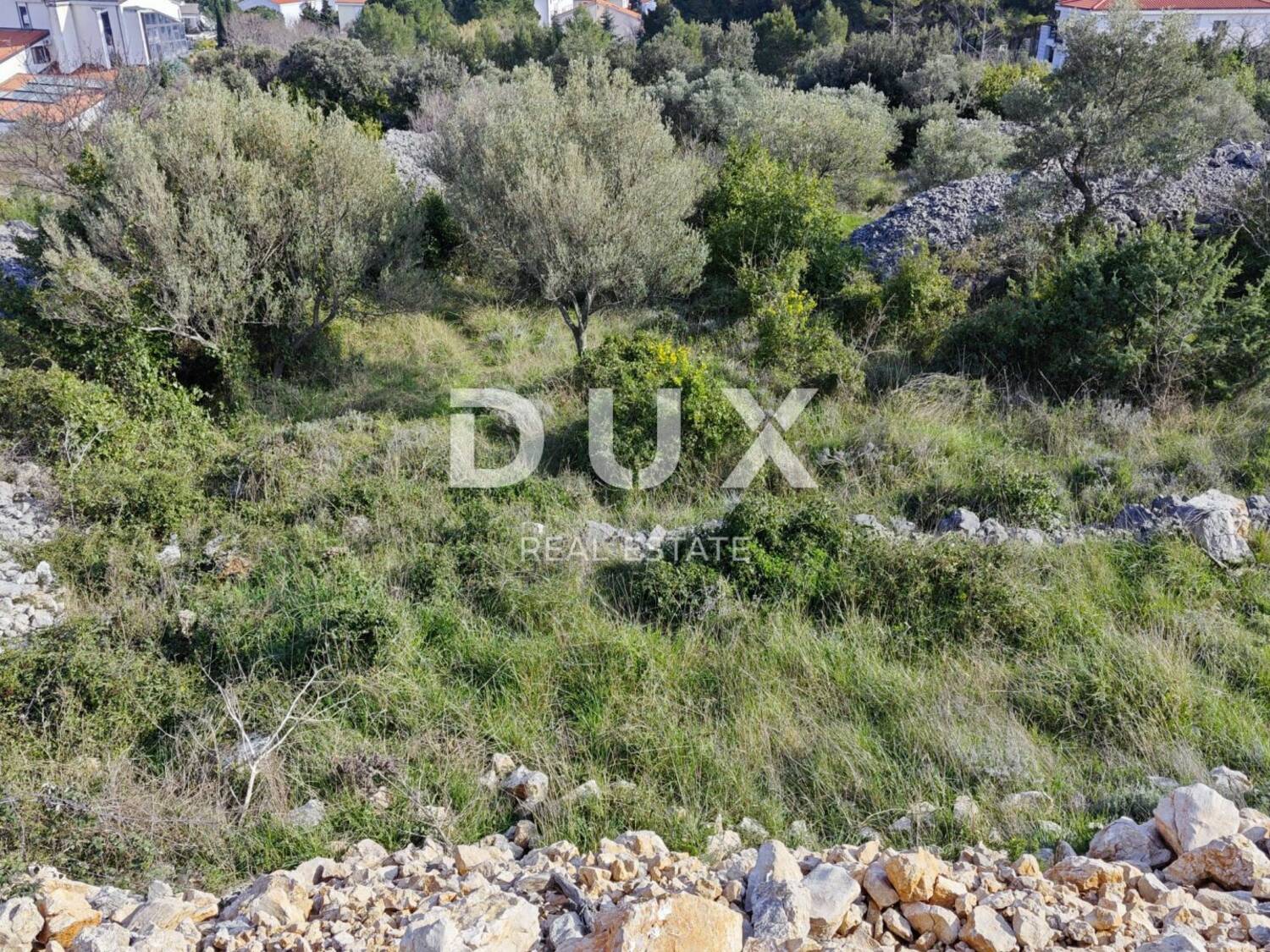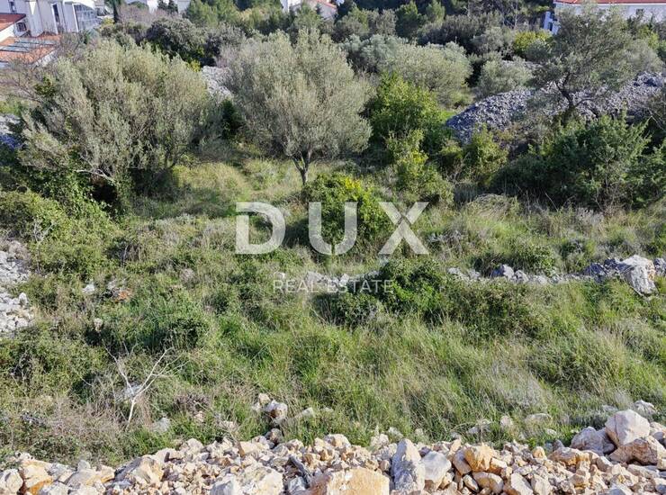 Atraktivno građevinsko zemljište s pogledom na more površine 1.325 m2 s započetim idejnim planom za dvojnu višeobiteljsku zgradu.