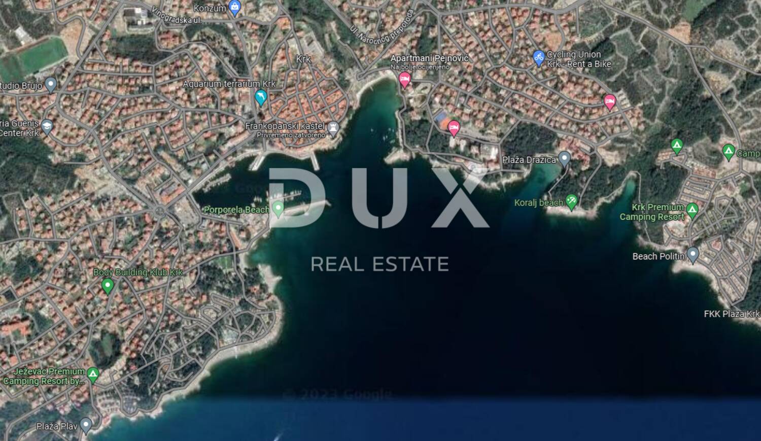 OTOK KRK, GRAD KRK, CENTAR - građevinsko zemljište 1.325 m2 s pogledom na more za stambenu zgradu / stanove / apartmane / obiteljsku kuću / villu s bazenom!!! PRILIKA!!!