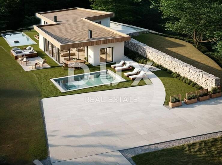 Projekt podrazumjeva prizemnicu sa dvije samostalne stambene jedinice sa dva bazena i garažom. Moguća je izmjena odnosno dopuna građevinske dozvole i dizanje dodatno kata.