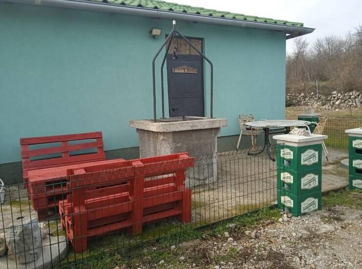 U masliniku se nalazi montažni objekt 5x5m (veće spremište za alat) a uz objekt je napravljena i gušterna odn. bunar sa hidroforom. Na krovu su solarni paneli.