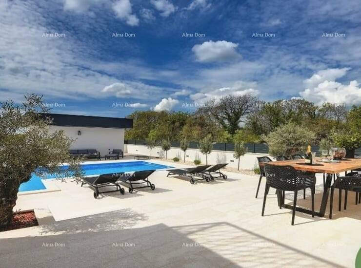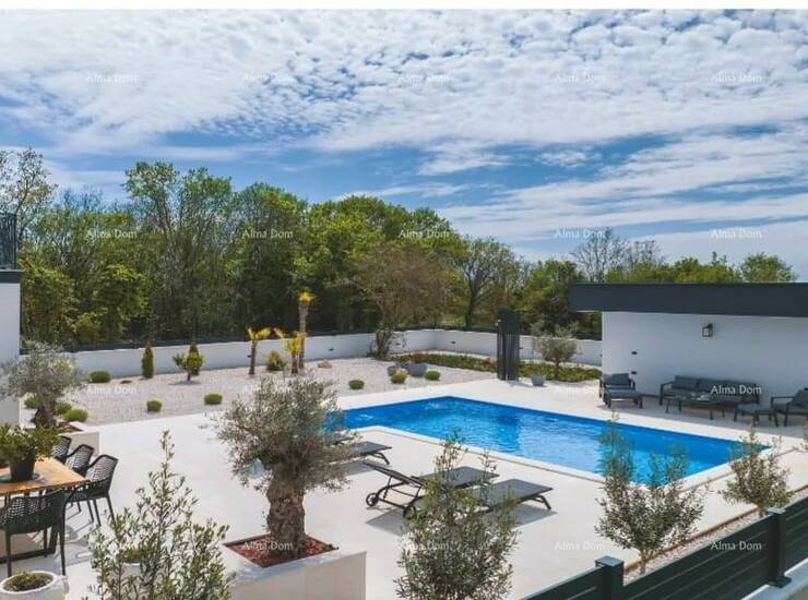 Na lijepoj i mirnoj lokaciji, okružena prirodom, smjestila se ova moderna kuća s privatnim bazenom i vrhunskom opremom, idealna za obiteljski život ili luksuzni odmor.