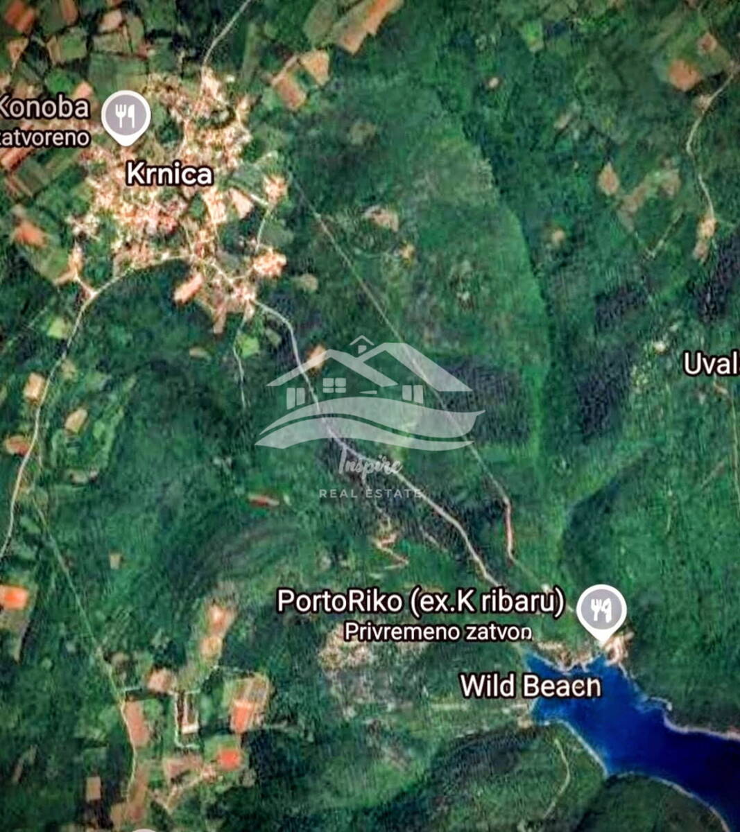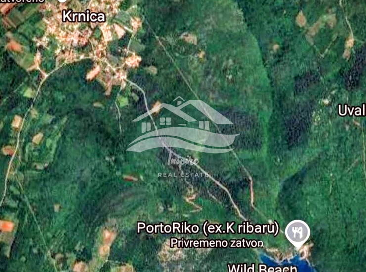 ◆ 7055 m2 pašnjak i šuma – uz ucrtanu šumsku cestu, u naravi šuma, teren se proteže paralelno s morem, prva kuća udaljena cca 100 m – 141.100 €