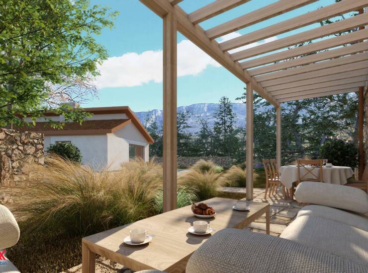 Parcela s prekrasnim pogledom na planinu Učku smještena je u malom i mirnom selu, idealnom za opuštanje i bijeg od gradske vreve.