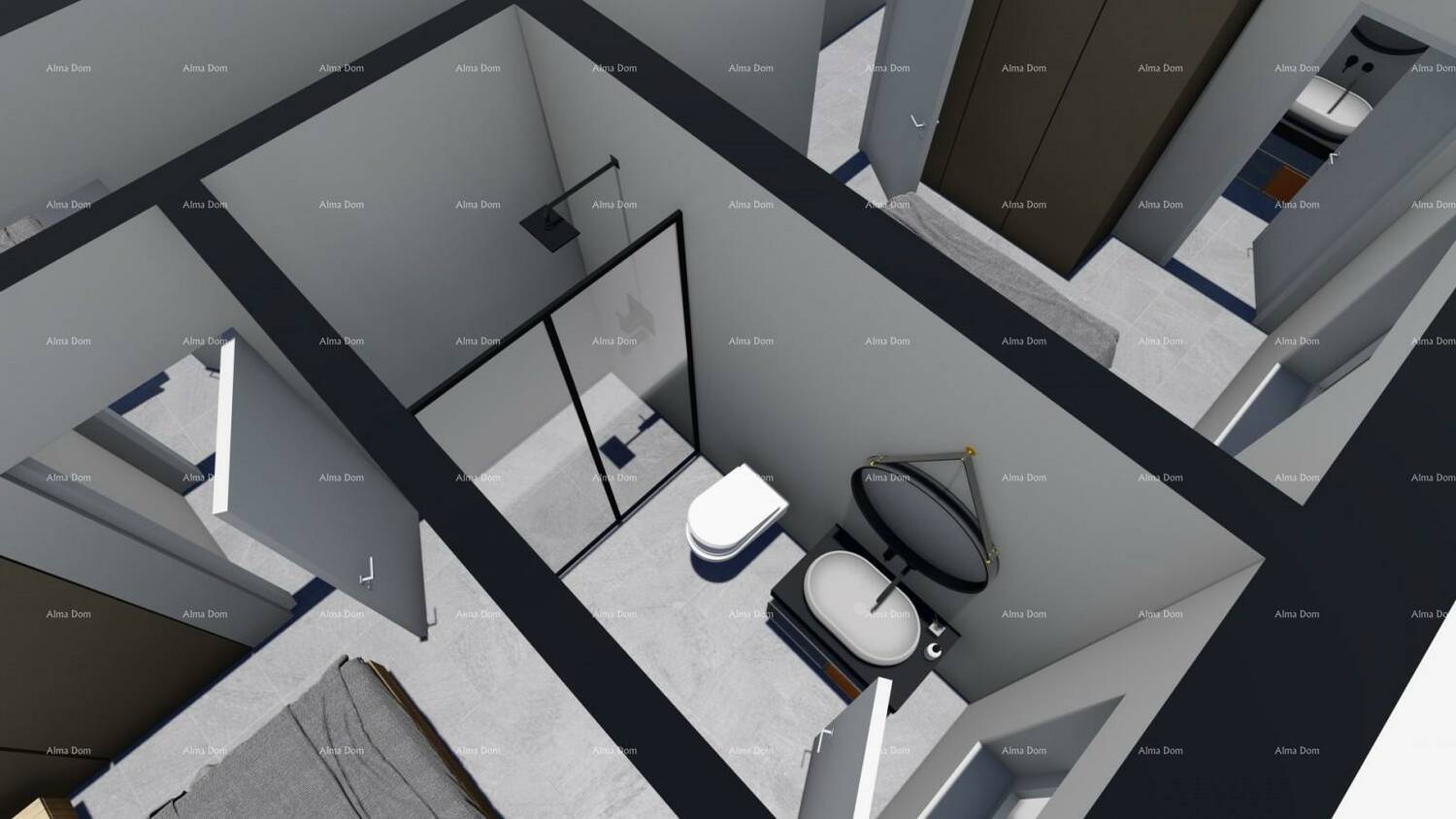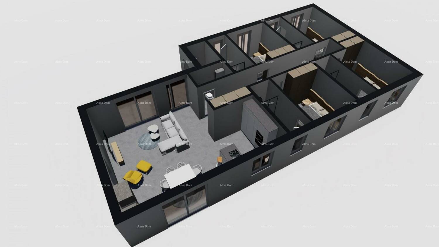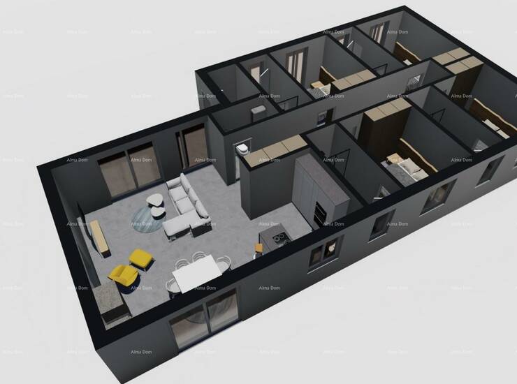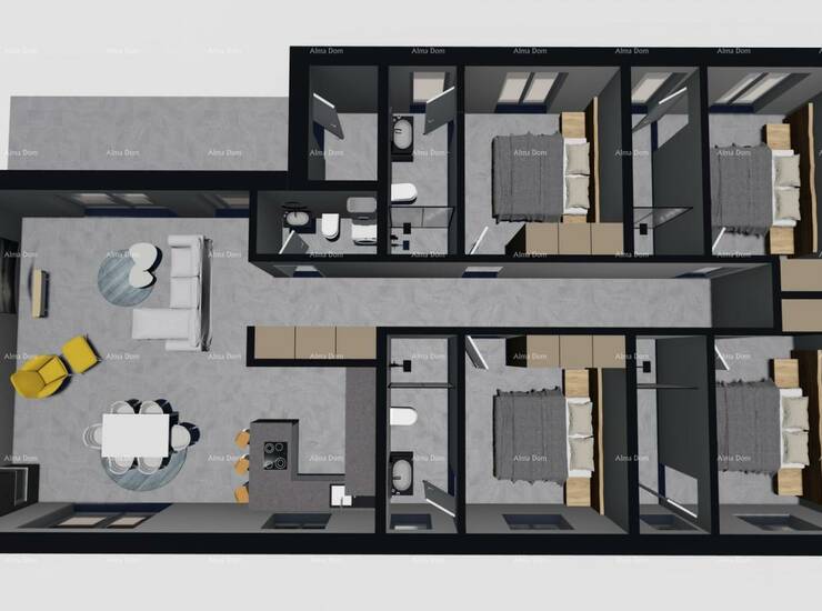 Sastoji se od 4 spavaće sobe (svaka sa svojim kupatilom), dnevni boravak, kupatilo i kuhinja s blagovaonom.