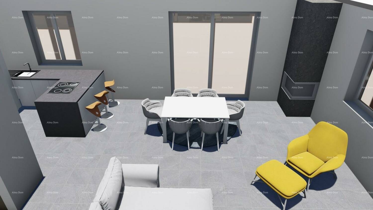 Pomoćni objekt (konoba) od 20m2 sastoji će se od kupatila, kuhinje i blagovaone.
