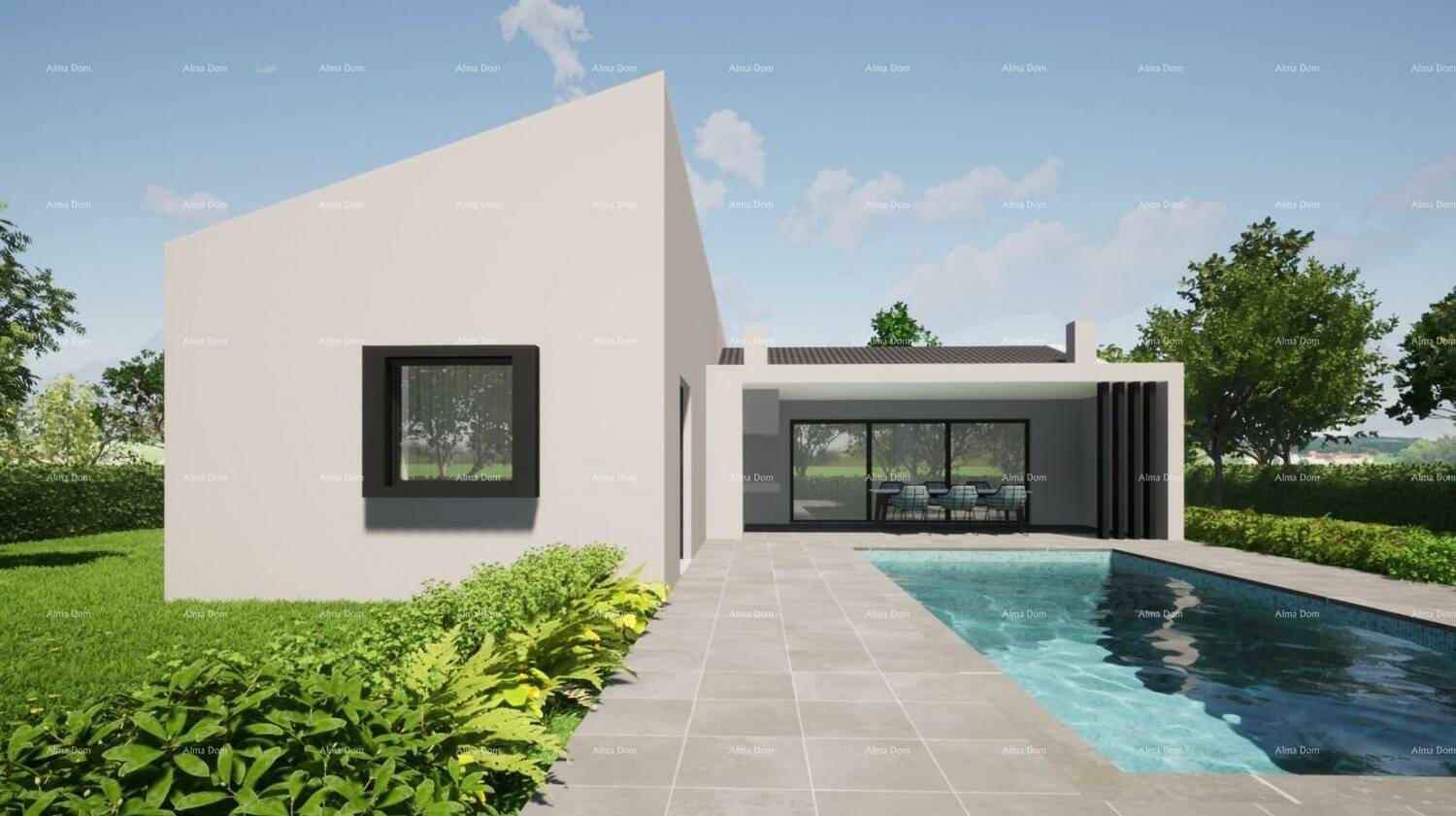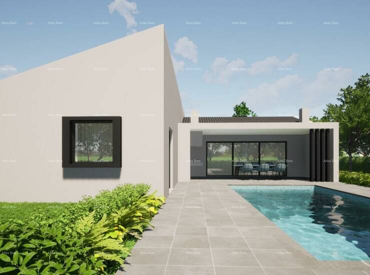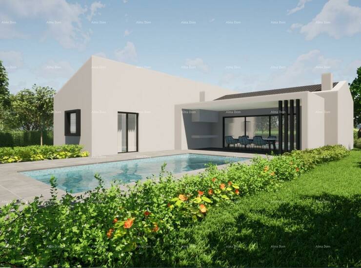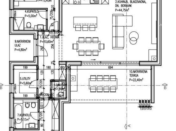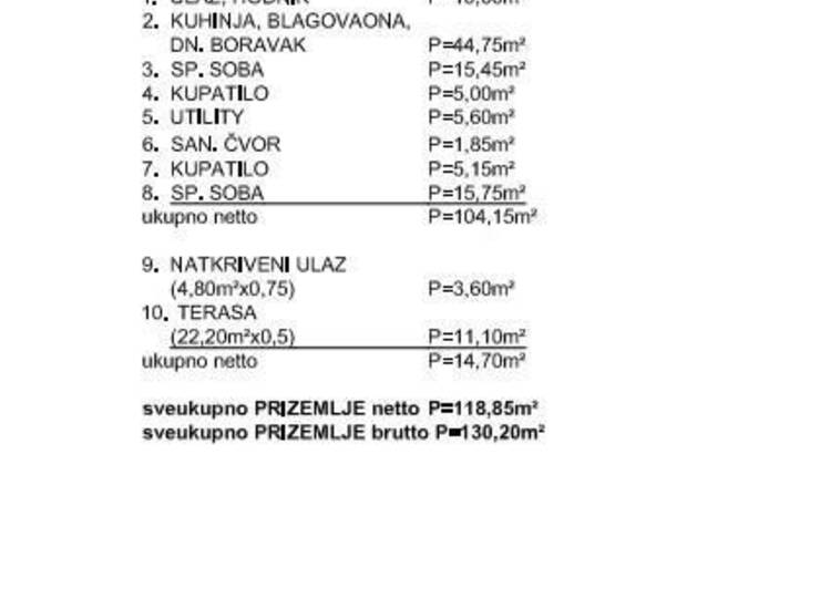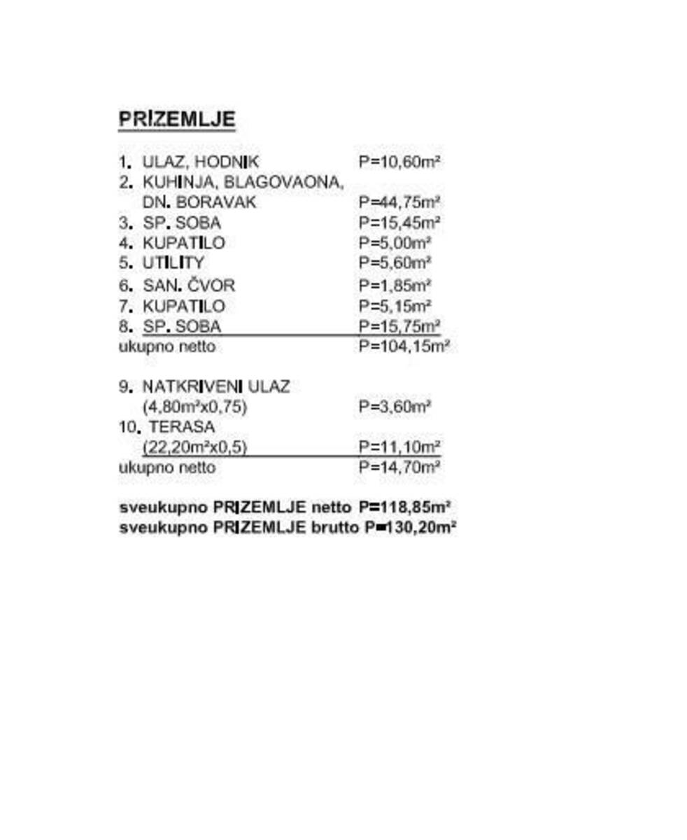 Sastoji se od ulaznog hodnik i wc-a, te u nastavku se nalazi velika kuhinja sa otokom, blagovaonica i dnevni boravak s kojeg se izlazi na veliku terasu i bazen.