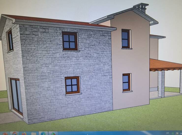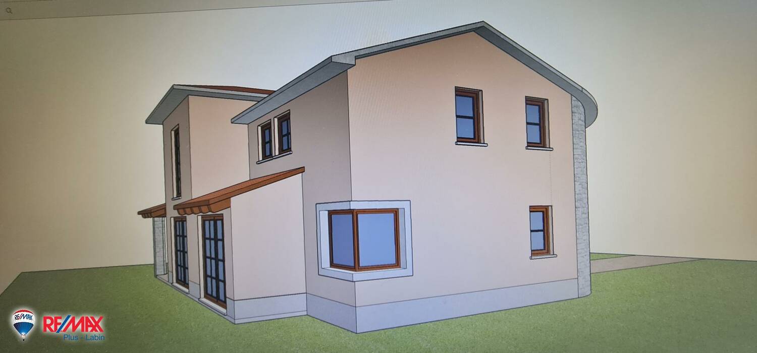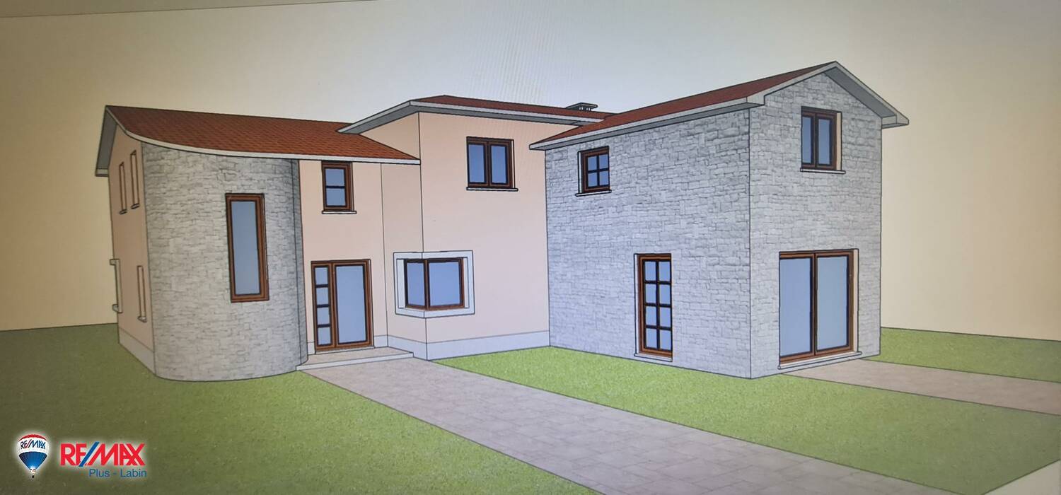 Prodaje se prostrano građevinsko zemljište u Kršanu, na lijepoj i mirnoj lokaciji sa ishodovanom građevinskom dozvolom i plaćenim komunalijama. Na terenu je izvedena temeljna ploča za gradnju obiteljske kuće stambene površine 220 m2 koja se sastoji od prizemlja i jednog kata.