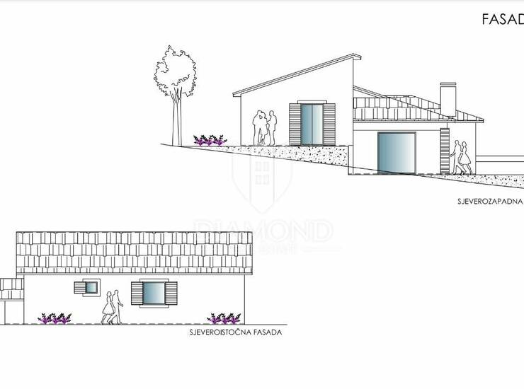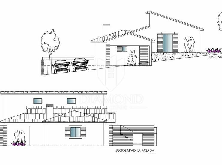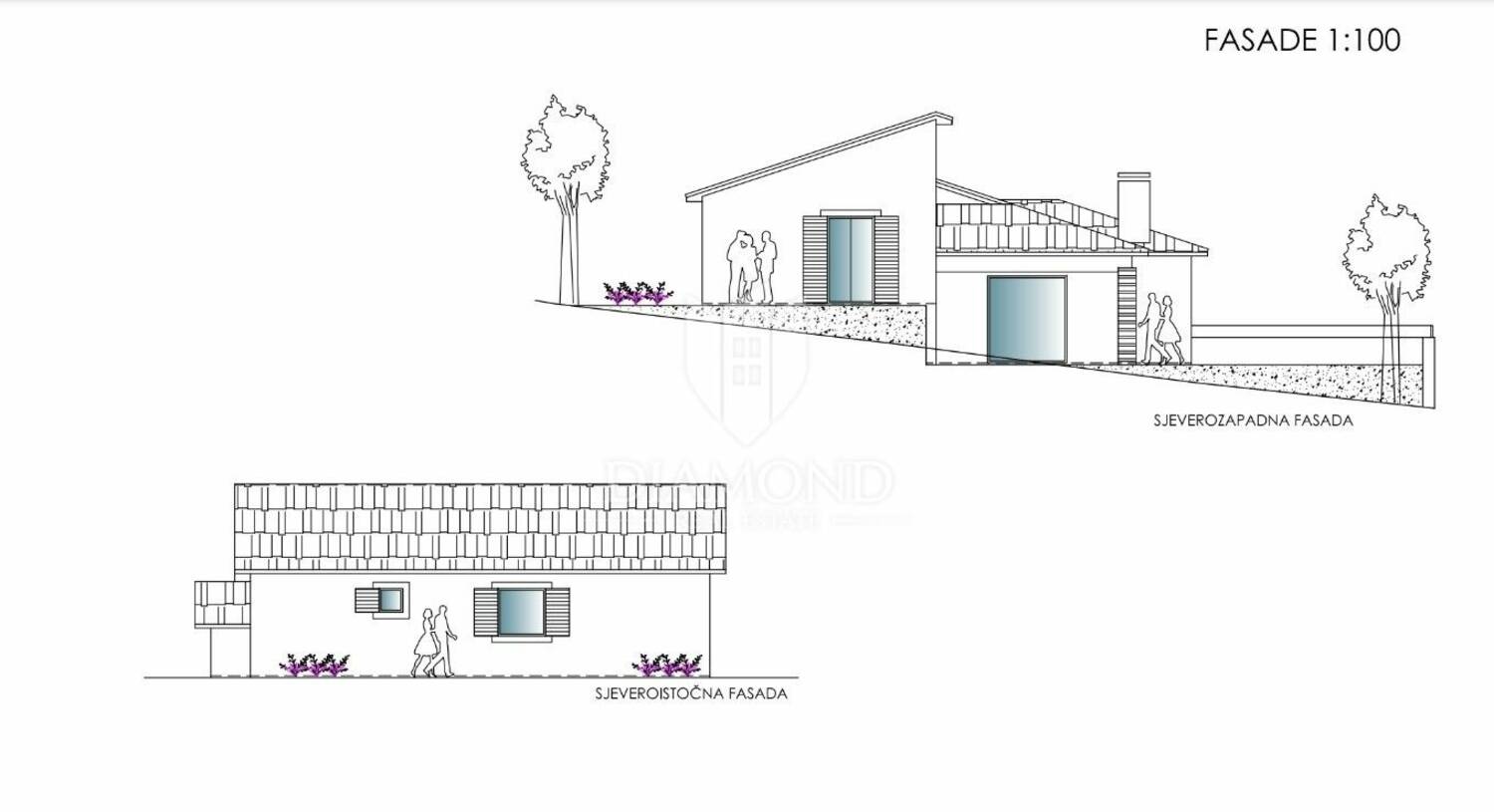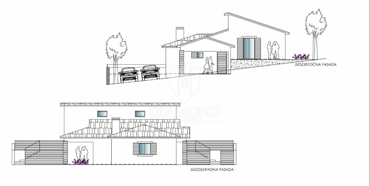 Napravljen je projekt i ishodovana građevinska dozvola za gradnju kuće od 125 m2 koja se sastoji od tri spavaće sobe, dvije kupaonice te dnevnog dijela koji obuhvaća kuhinju, blagovaonicu i dnevni boravak. Prodavatelj nudi mogućost gradnje kuće do visoke roh-bau faze u cijeni od 135.000€.