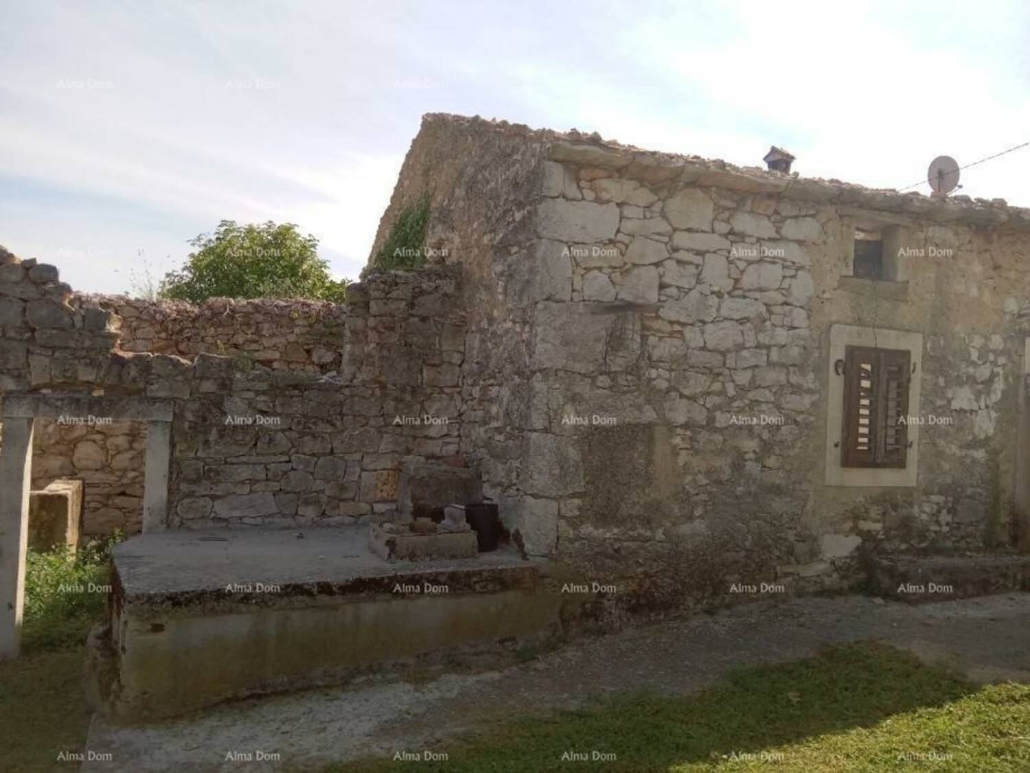 Na kući nema krovne konstrukcije, ali je kamena konstrukcija sačuvana i vrlo dobra, debljina zidova je cca 60 cm, te je kuća očišćena od šute i spremna za renovaciju.