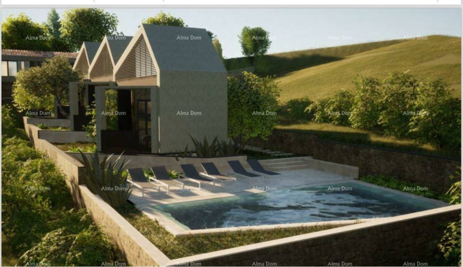 Planirana vila uključuje bazen, atrij i 3 parkirna mjesta.