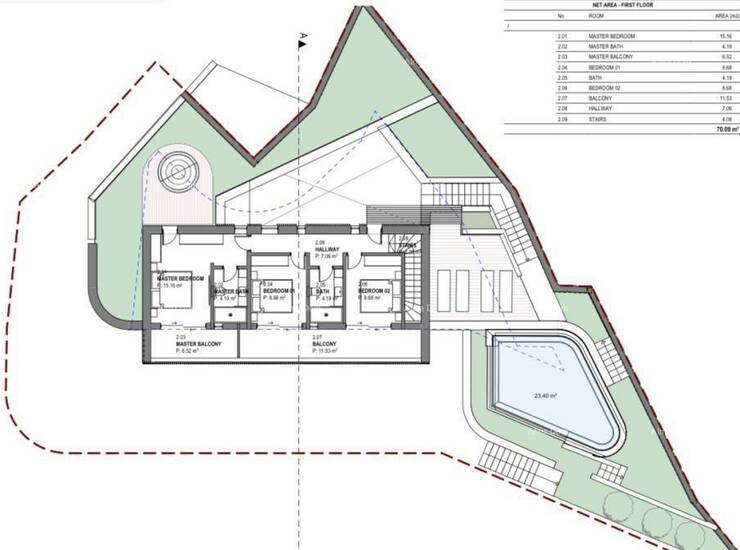 Pripremljeno idejno rješenje i geodetska podloga za gradnju ville (PO+P+PK) ukupne površine 210 m².
