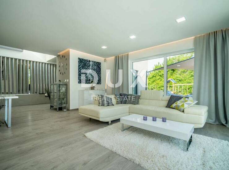 Prekrasna vila moderne gradnje površine 176 m2, smjestila se u mirnom naselju u blizini Labina na okućnici površine 1225 m2.