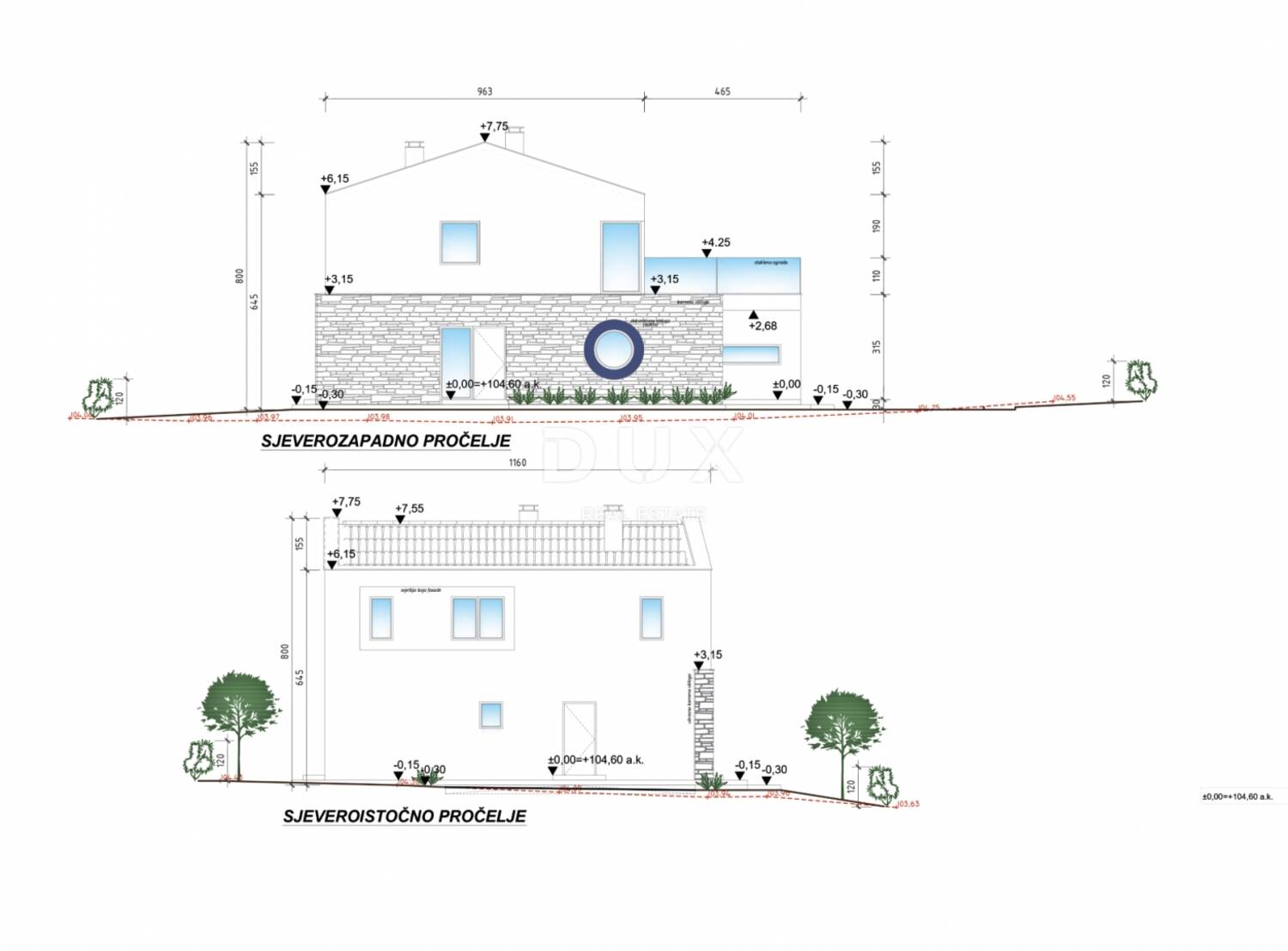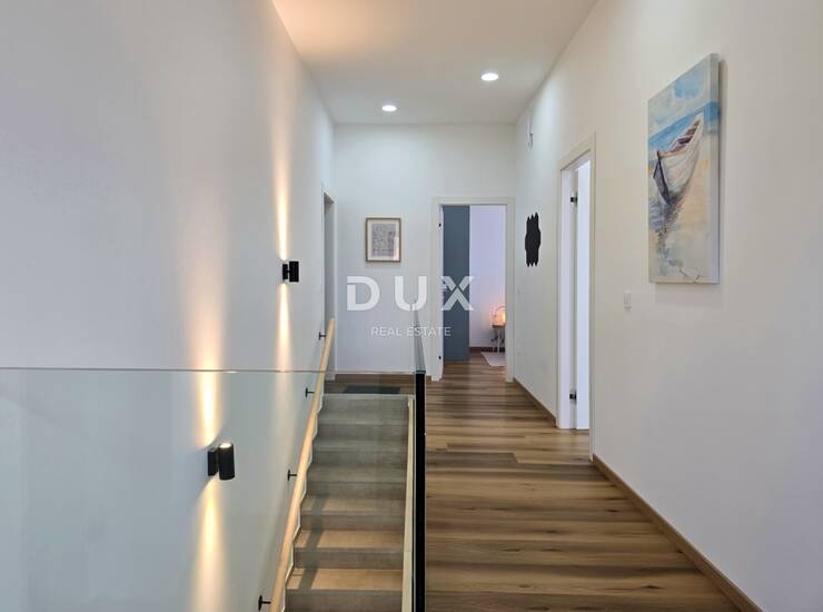 Kuća suvremenog iskoraka u bezvremenskoj arhitekturi s naglaskom na funkcionalnost i estetiku se oblikovno i koloristički uklopa u naselje i krajolik, razvedena je na dvije elegantno namještene i kvalitetno opremljene etaže funkcionalnog tlocrta a stambena površina nudi skladan životni ambijent okupan prirodnom svjetlošću koji odiše sofisticiranošću i udobnošću.