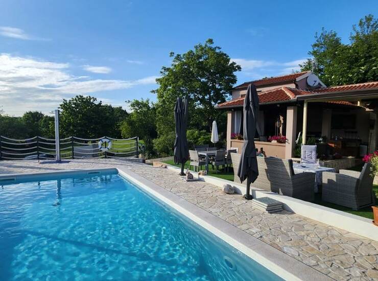 Ispred oba stana na lijepo uređenoj okućnici površine 2167 m2 smješten je jacuzzi marke Wellis 2x2 mtr. 5 sjedala, blagovaonski stol za uživanje na otvorenom i novoizgrađeni vanjski bazen veličine 32 m2 sa sunčalištem od 100 m2 popločana priodnim kamenom i vanjska ljetna kuhinja (roštilj, sudoper).