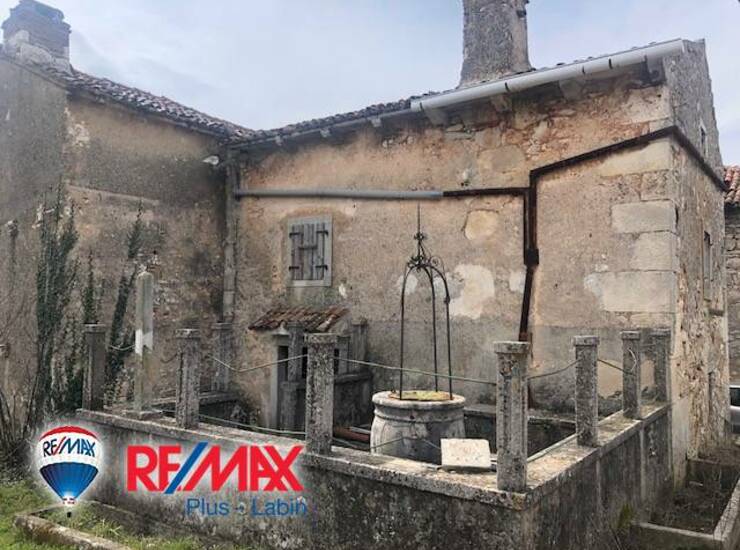 DVOJNA Kamena kuća sa cisternom i pomoćnim objektom nalazi se u malom selu kraj Labina, udaljenom oko 6 km.
