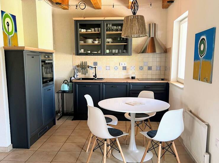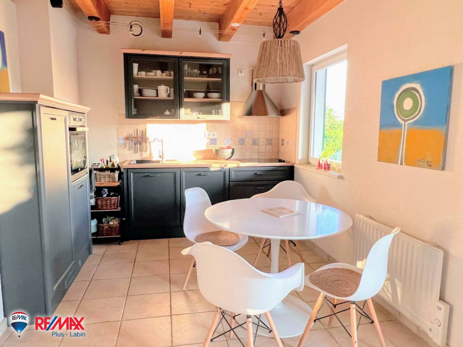 U prizemlju je smještena kuhinja sa blagovaonicom i dnevnim boravkom.