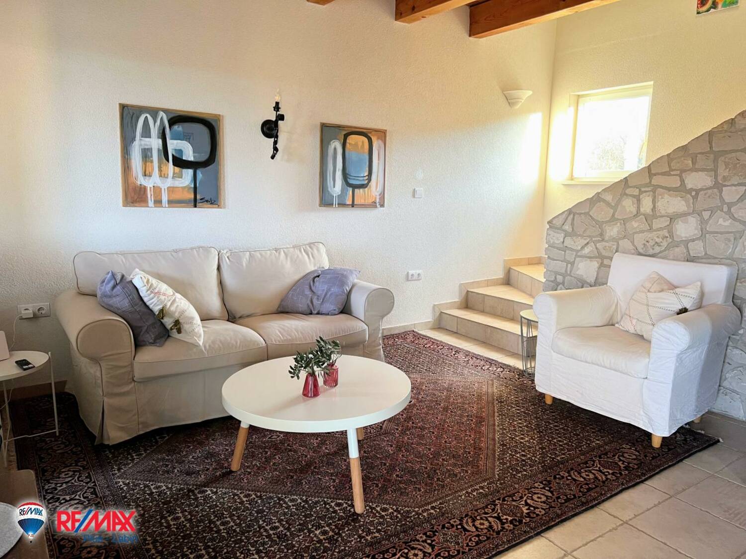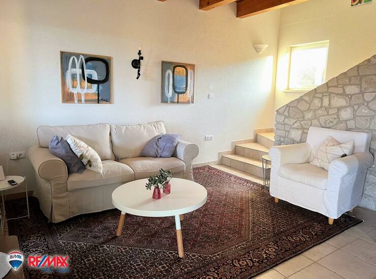 Stambeni dio ima 70 m2 plus 30 m2 natkrivene terase, te se sastoji od prizemlja i kata.