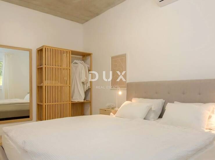 Kuća svojom arhitekturom ne remeti okoliš već stvara sinergiju prirodnog okruženja i modernog dizajna. Definirana je kao jedna stambena jedinica čija je površina raspoređena kroz jednu elegantno namještenu i kvalitetno opremljenu etažu.
