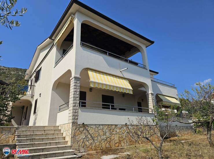 I prizemlje i kat kuće imaju prostrane natkrivene terase sa kojih se pruža fantastičan pogled na more, otoke i cijeli Kvarner. Sva vanjska stolarija je aluminijska, prozori PVC, dok je ograda na terasama izvedena od inoxa.