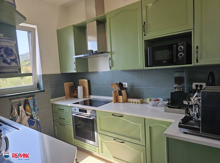 Ova lijepa kuća nalazi se u malom turističkom mjestu na istočnoj obali Istre koje je udaljeno 12 km od Labina i 16 km od Rapca.