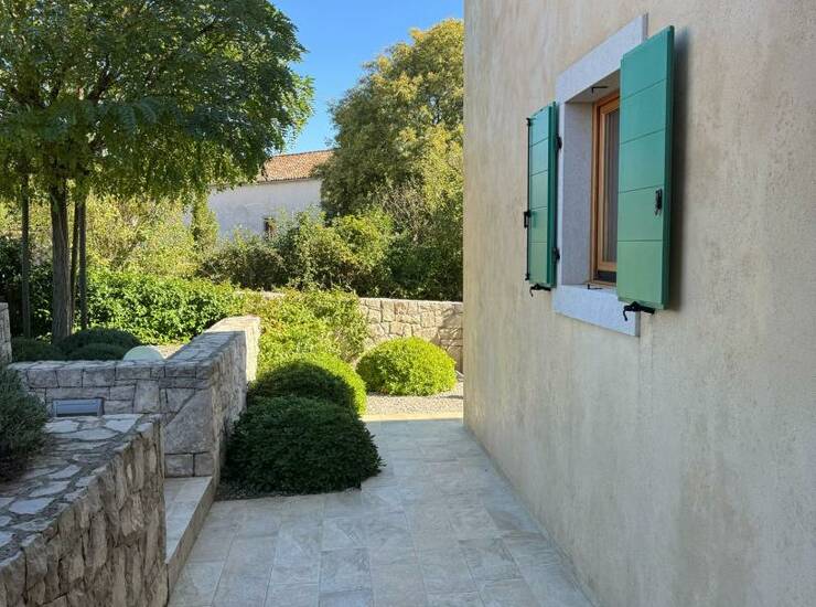 Kuća blista u toplim, mediteranskim bojama koje se savršeno slažu s detaljima od prirodnog kamena i ističu jedinstveni istarski šarm. Smještena u lijepo uređenom ambijentu na slikovitom brežuljku, samo nekoliko minuta udaljeno od primamljivih plaža, ovo mjesto nudi savršenu simbiozu opuštanja i avanture koji idu ruku pod ruku.