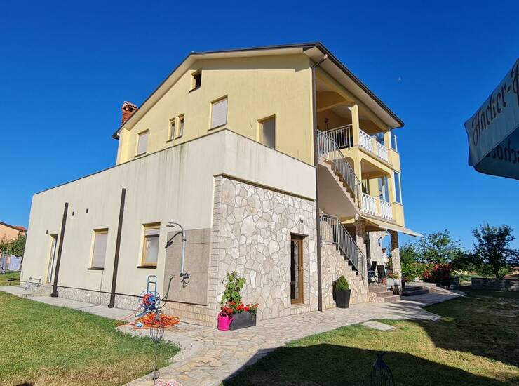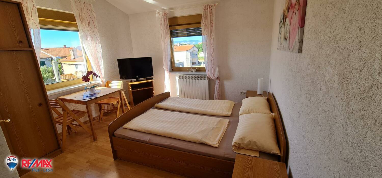 Samostojeća kuća u blizini Labina, smještena u mirnom dijelu naselja sa pretežito obiteljskim kućama i kućama za odmor.Sastoji se od prizemlja i još dva kata.
